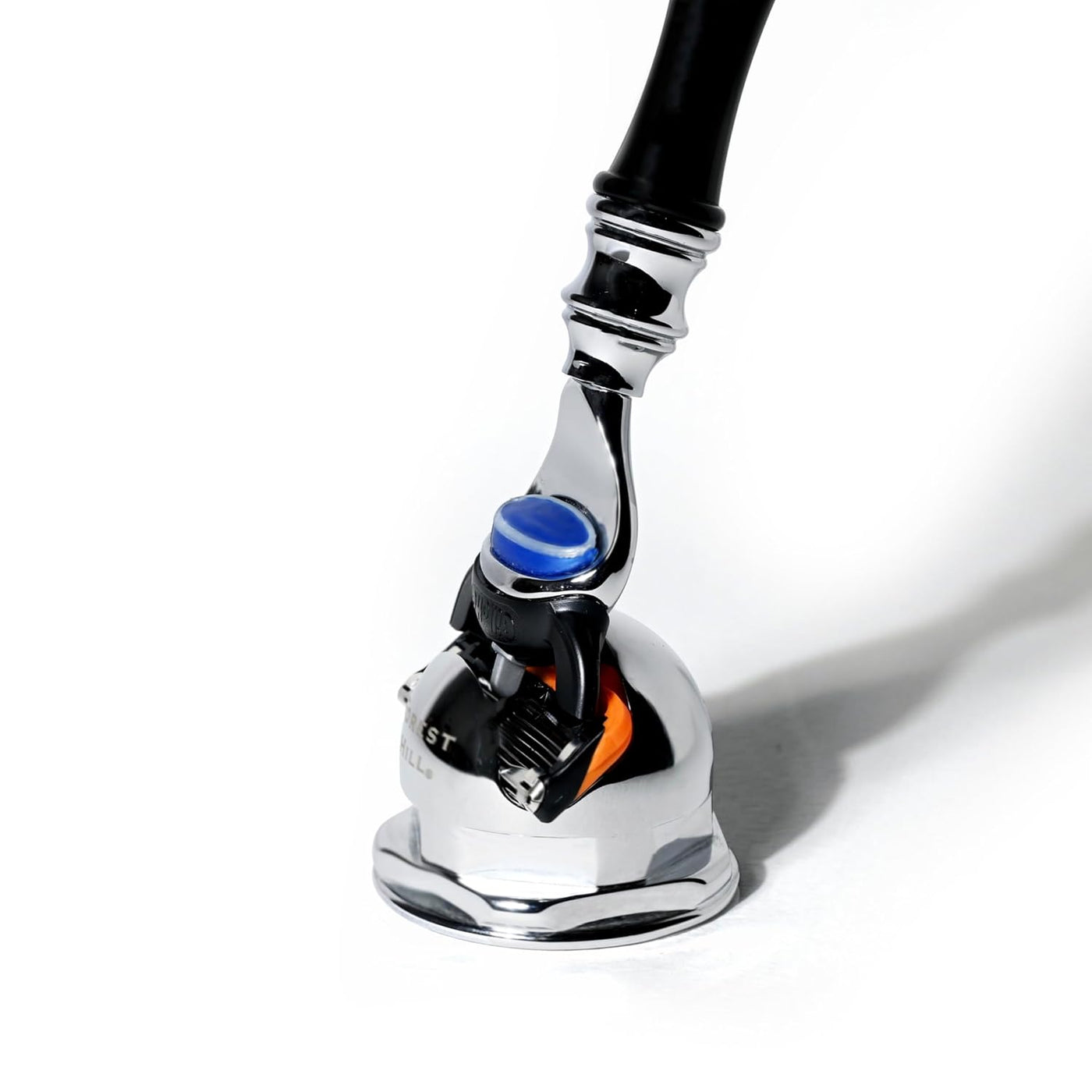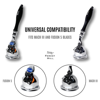 Universal Compatibility: Accommodates Mach Ill and Fusion 5 razors, maintaining blade longevity. Premium Chrome: Crafted from high-quality chrome for rust-free durability and an added touch of sophistication.