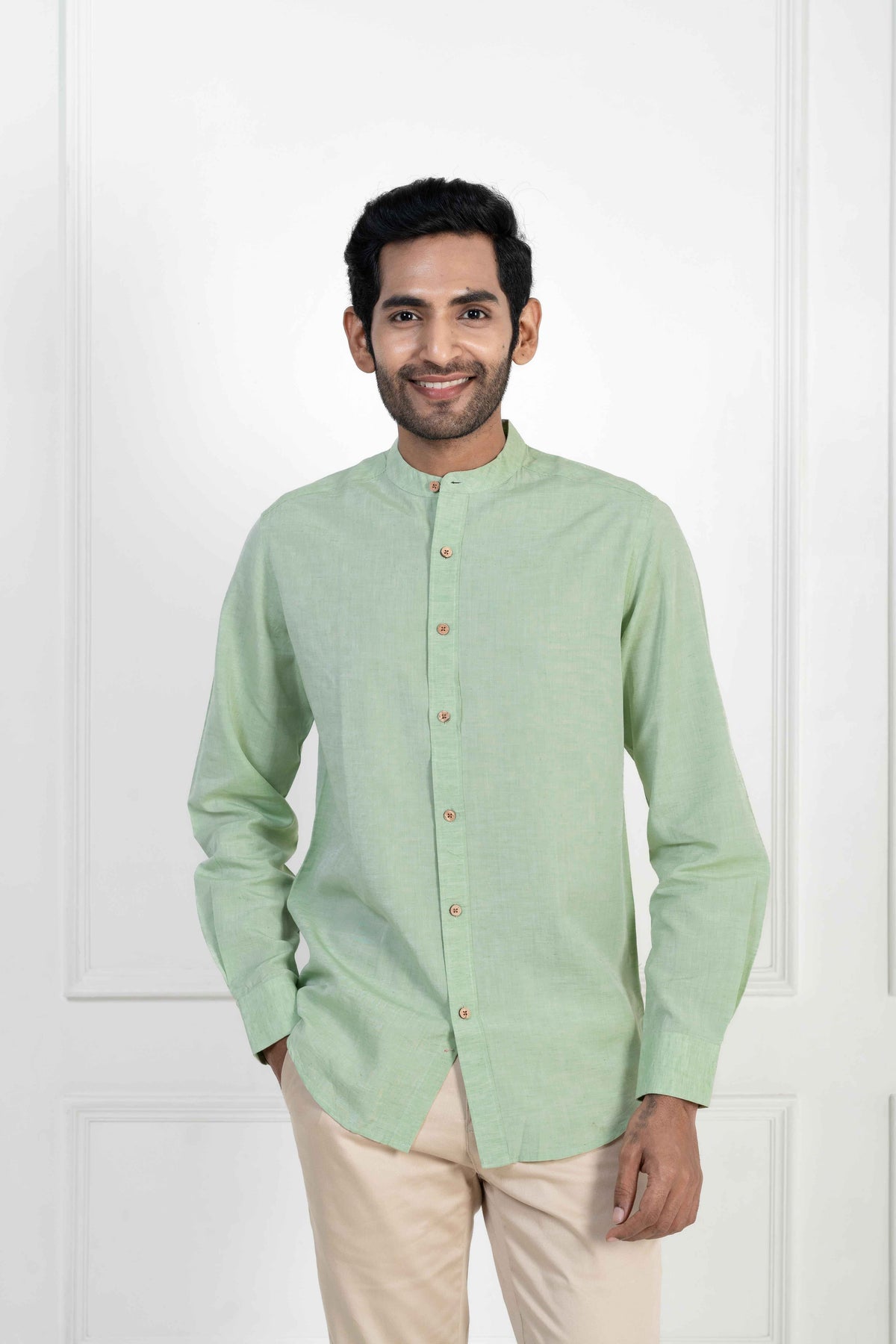 Earthy Route Fresh Green · Mandarin Collar Shirt