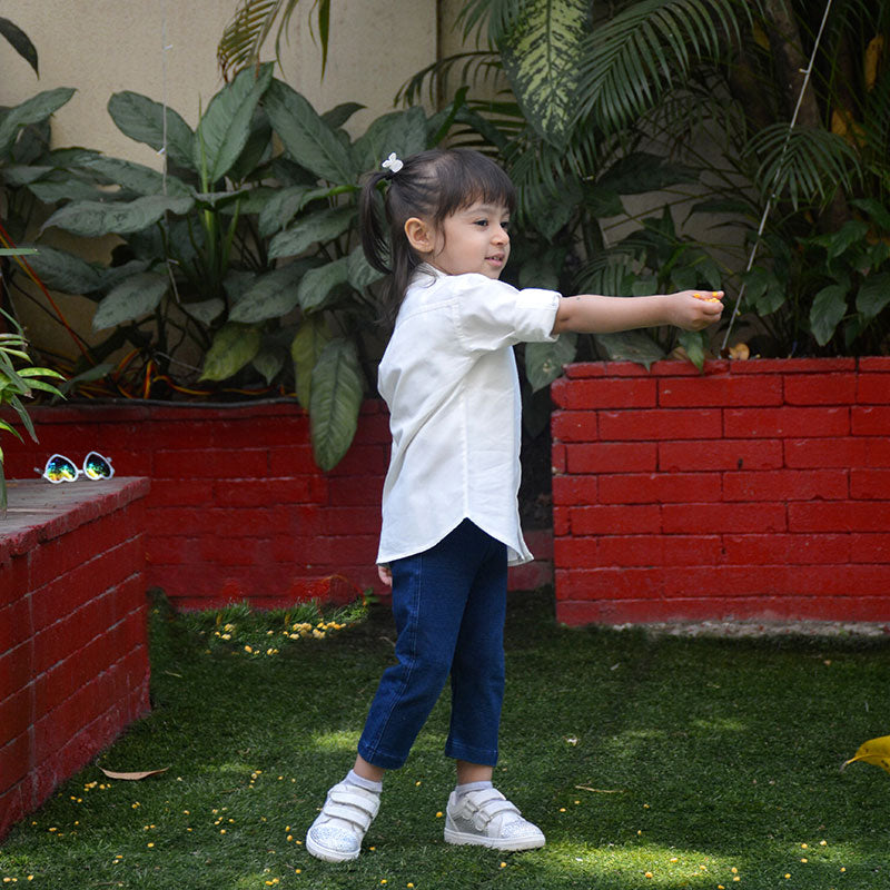 For the pretty girls, wear it like a classic boyfriend shirt... or a dad shirt! How cute do the little princesses look in an oversized shirt with jeans or leggings? Roll up the sleeves with sneakers for a streetwear look or add a belt on the waist with pretty sandals for a stylish party ready girl!