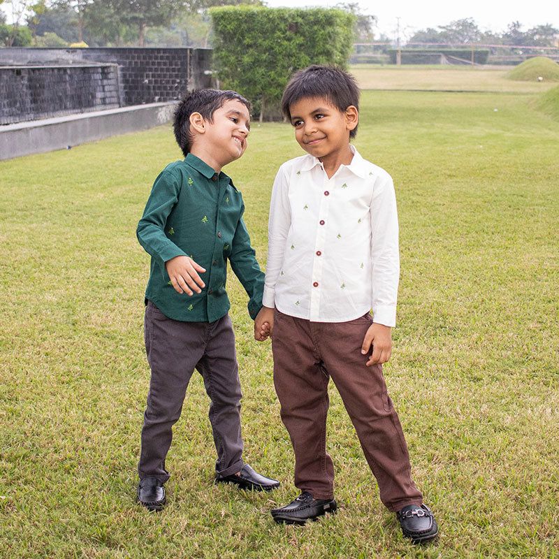 ItŠ—Ès time to bring out the Christmas trees! Our classic Frost shirt with a pretty hand embroidered Christmas trees will be your go to shirt for Christmas parties. Roll up the sleeves or keep them crisp straight, jeans or trousers, stylize it your way for a casual Christmas day outing or a party. Designed with a shirt collar, button placket and long sleeves, this shirt is made of 100% organic cotton for uber comfort.