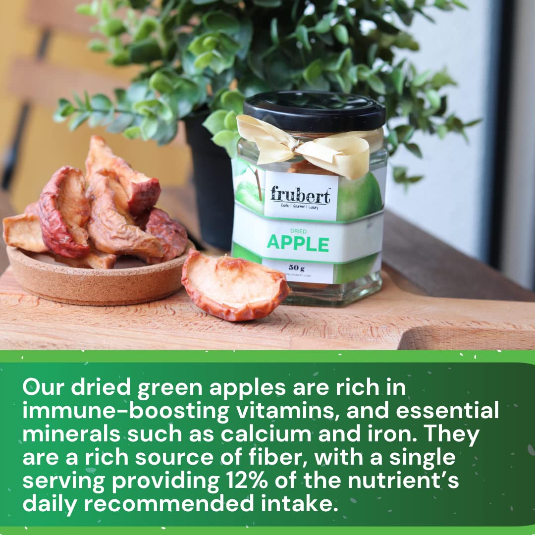 Frubert dried green apple is a famous fruit originating from Europe, It comes with the peel of apple which helps retain the complete nutrition of the fruit and without the worry of wax coat unlike in fresh apples.