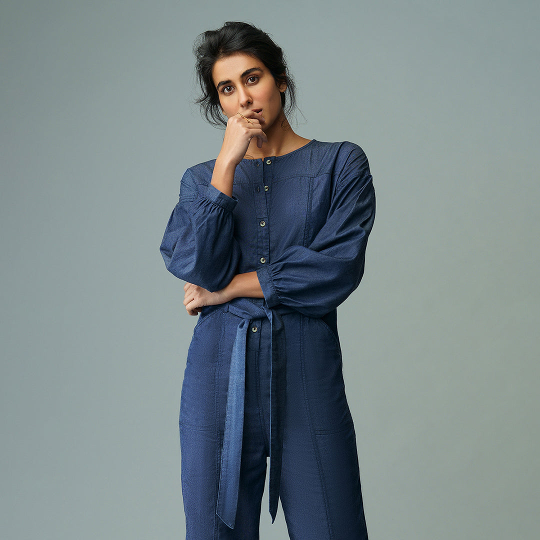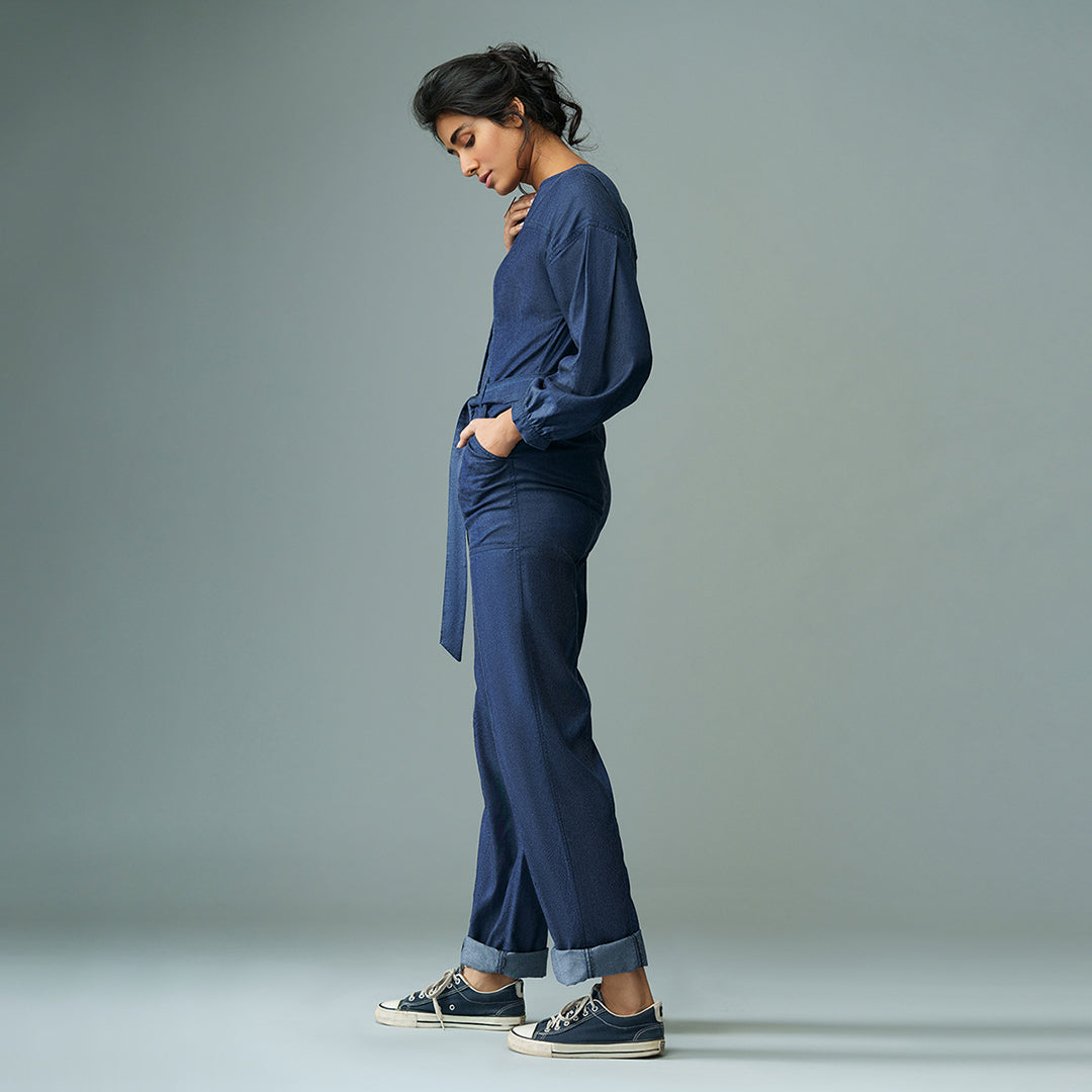 Upgrade your casual wardrobe with the B77 Eco Denim Jumpsuit, designed for effortless style and sustainable fashion. Crafted from eco-friendly denim, this jumpsuit combines comfort with a modern, flattering silhouette. Seam detailing enhances structure, while a figure-flattering belt cinches the waist for a tailored look. The drop shoulder armhole and full sleeves add a contemporary edge, making it perfect for holidays, parties, or casual outings. Pair it with sneakers for daytime ease or heels for an evening statement.