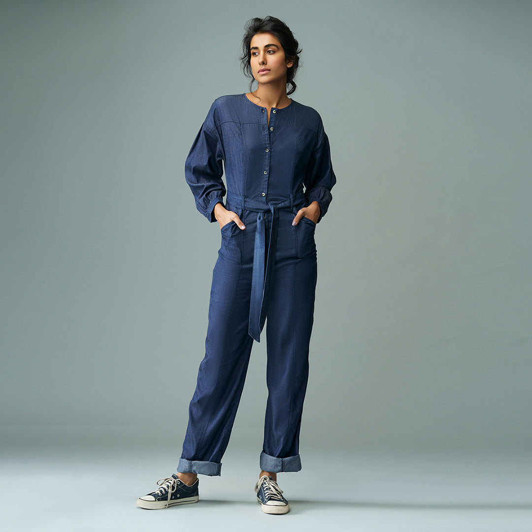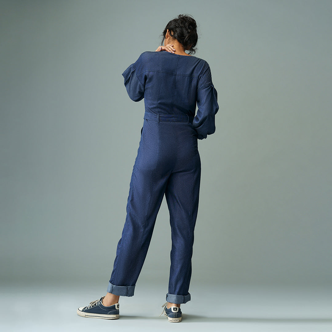 B77 Women's Full Sleeves Jumpsuit In Eco Denim