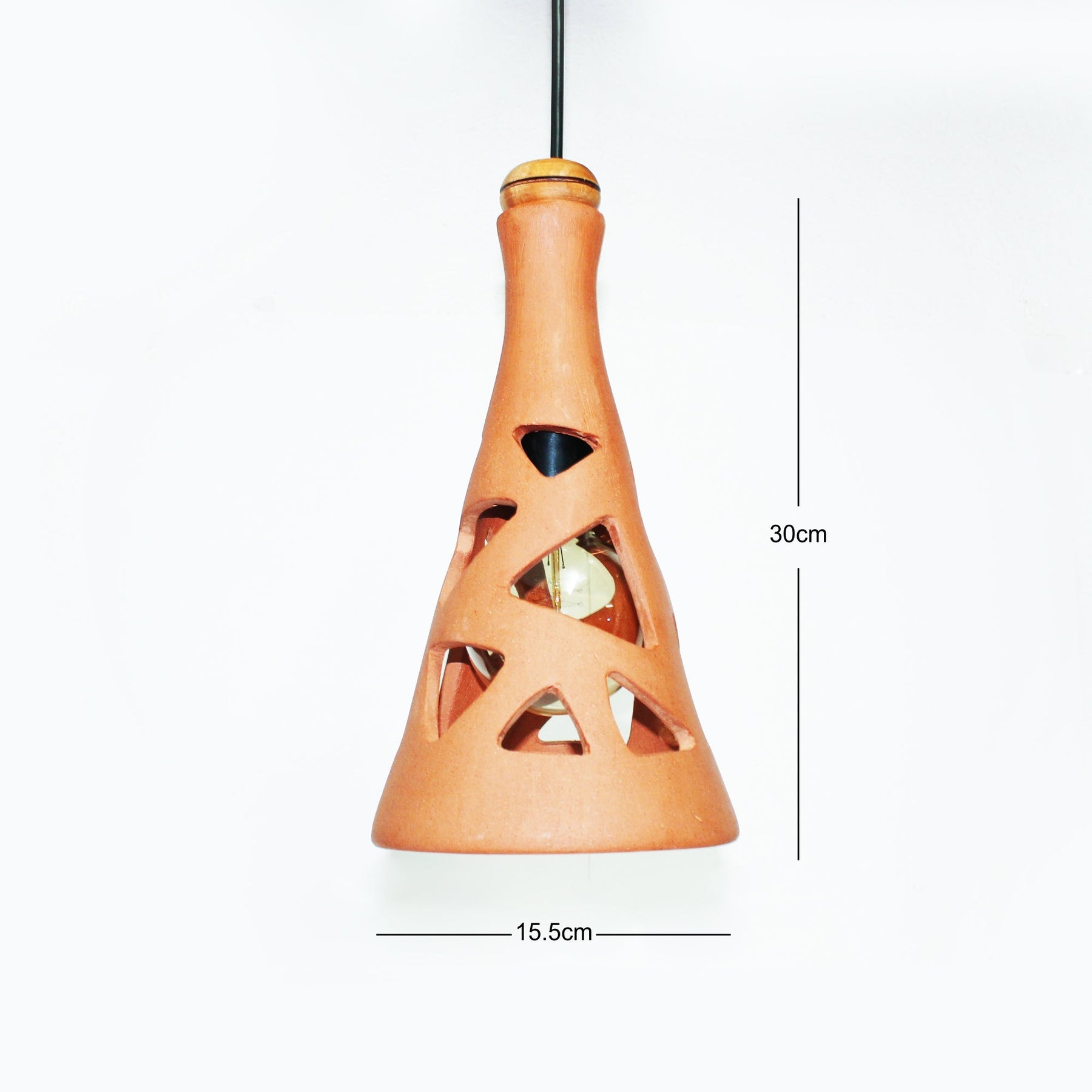 FUN came from FUNNEL 🙂 going by the the shape inspiration. This is one of the biggest model of entire terracotta light family. Very much modern and cool look if you go by the design detail of outer profile. Individual hanging is good enough to create a element of surprise in a modern homely & earthy space. This model is also having highly decorative perforation model too – which can be enquired separately as those are exclusive models. Main Shells of the Light are made of Burned Clay (Terracotta) and designed with hundreds of perforations. The complete light unit is assembled together with B22 holder & spacer with 6mm dia CE marked PVC wires which can straightway be hanged from ceiling with a help of a MS powder coated canopy as given. Need one Screw Type (B22) Bulb for each unit. Bulb costs are not included with this product price.