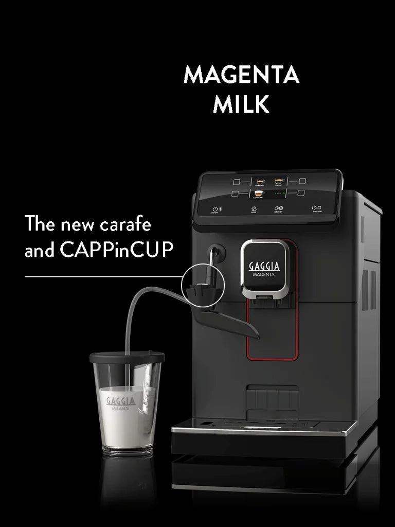 Gaggia Magenta Milk, inspired by the dynamic spirit of Milan is an automatic coffee machine blends traditional roots with contemporary design. Effortlessly enjoy barista-quality coffee with a simple interface and intuitive usability.