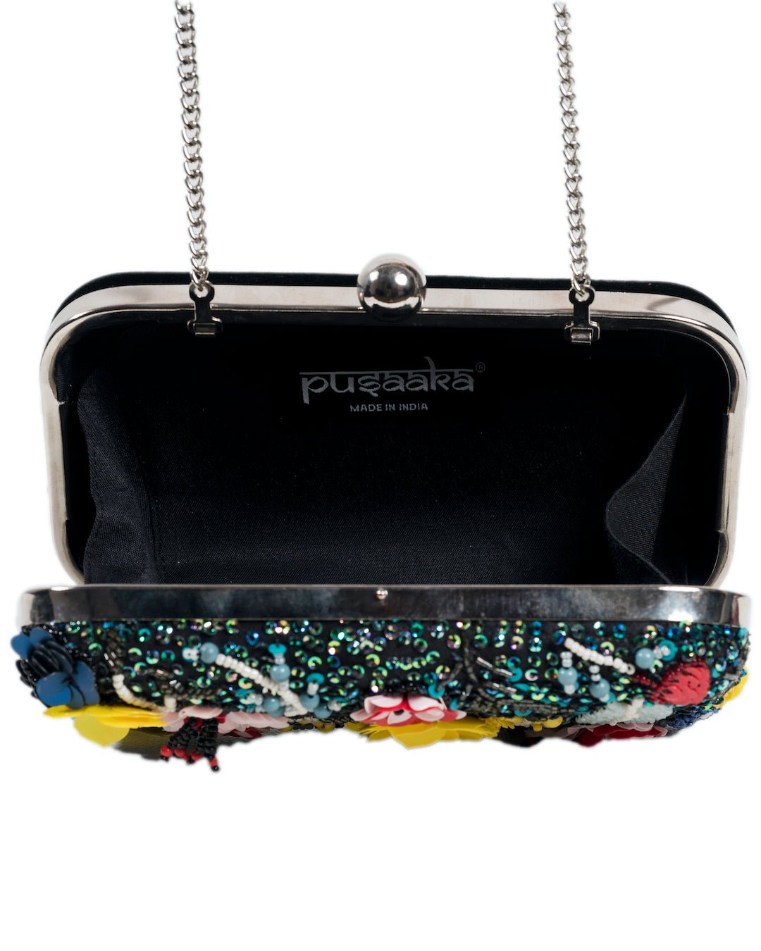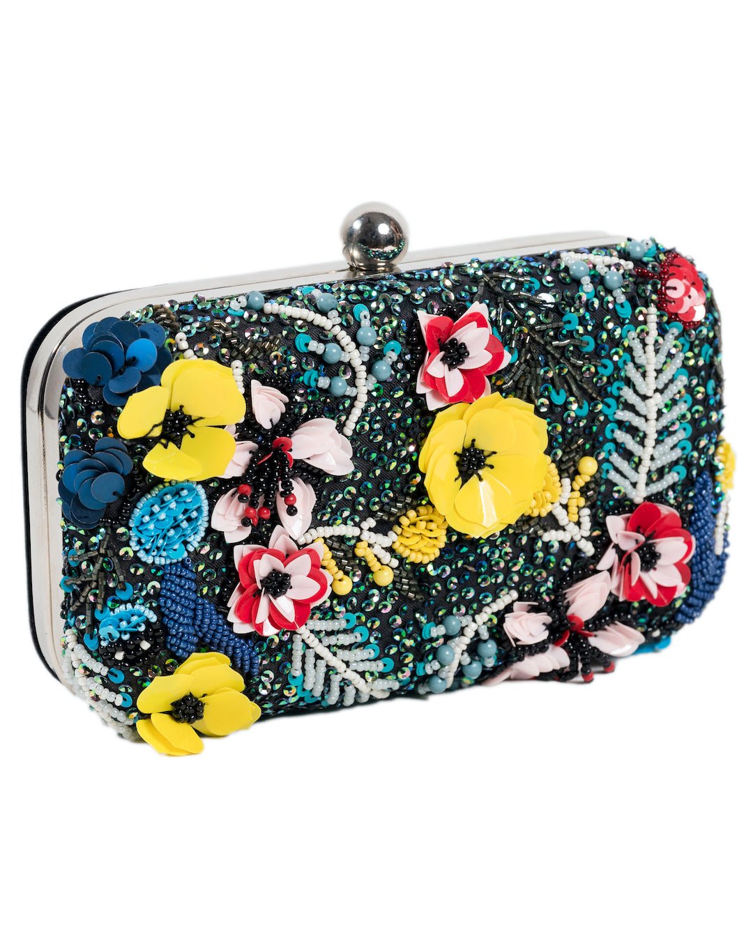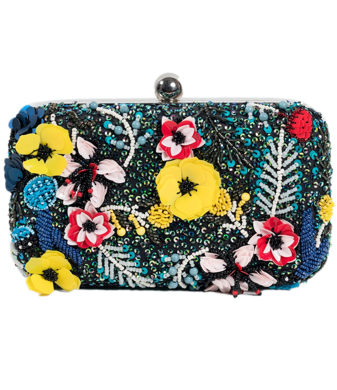 Product details: Inspired by the vibrant gardens of Lucknow, this statement piece showcases a stunning array of hand-beaded wildflowers in yellow, blue, and coral tones against a deep teal background. Each flower tells a story of the artisan's masterful technique, passed down through generations. The playful yet elegant design makes it perfect for both day and evening wear.