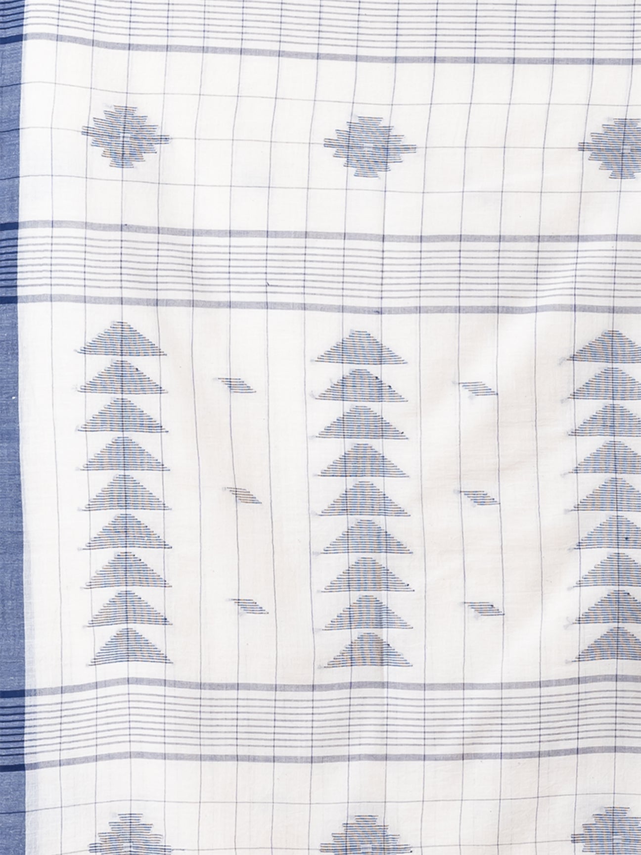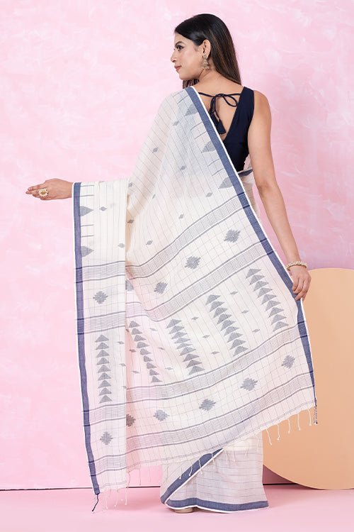 OCAU Geometric Bloom - Organic cotton saree with jamdani motifs II Off - White