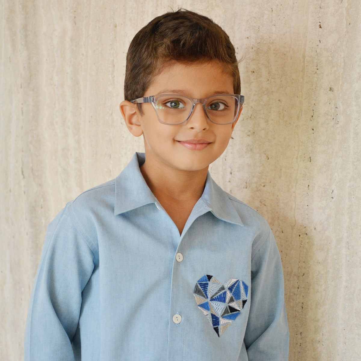 An abstract colourful heart, adding some quirk to the shirt äóñ for a fun playdate or a party, this shirt is versatile for all! Made from high-quality, breathable cotton denim fabric, this shirt ensures comfort for your child.Œæ