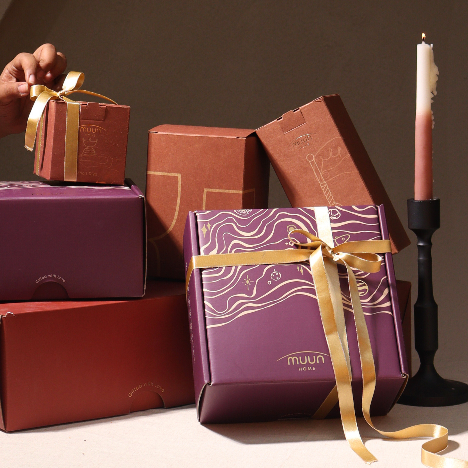 This Diya Pair Gift set includes a gift box and