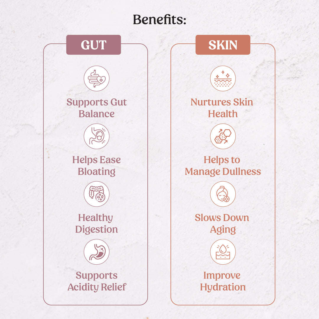 • Amla & Lemon: Packed with Vitamin C and Flavonoids to boost collagen production and skin elasticity.