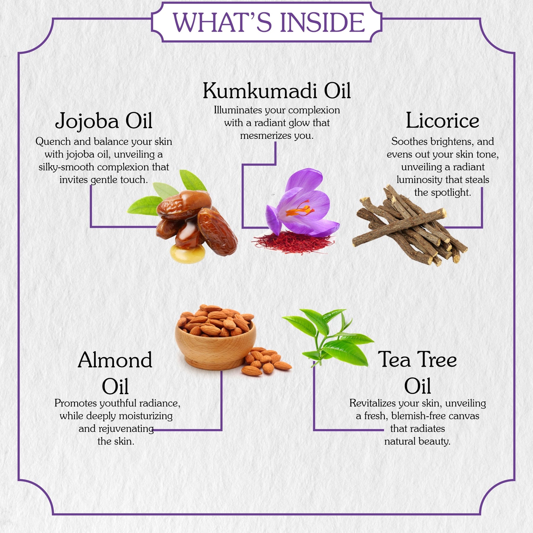 Unlock your inner glow with this 100% natural elixir of youth. Formulated with time-tested Ayurvedic ingredients like kumkumadi and saffron strands, these Glow Drops deliver intense hydration and brightening power. Consider it your daily dose of natural radiance. Your skin will thank you for the nourishment and your mirror will thank you for the view. Glow on!