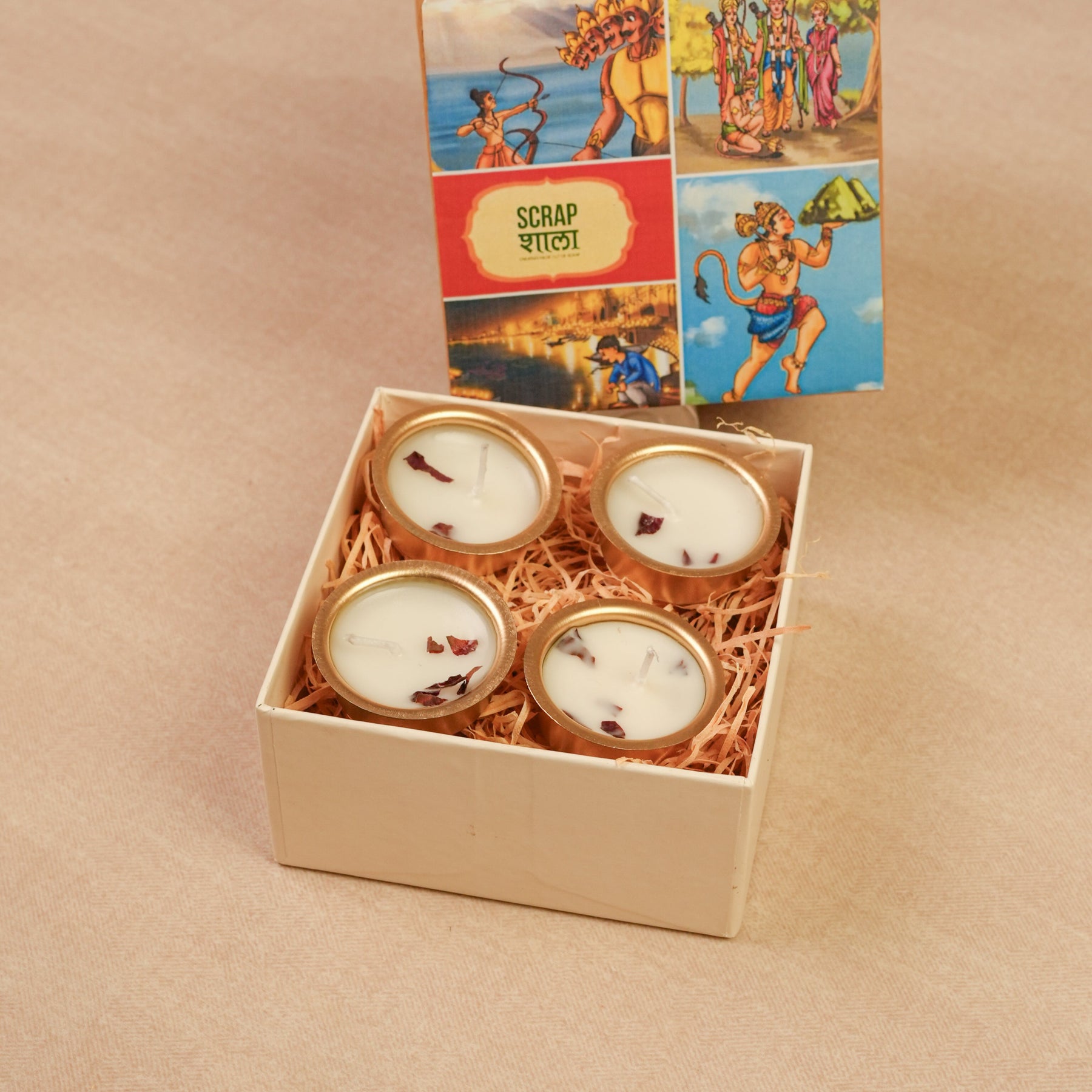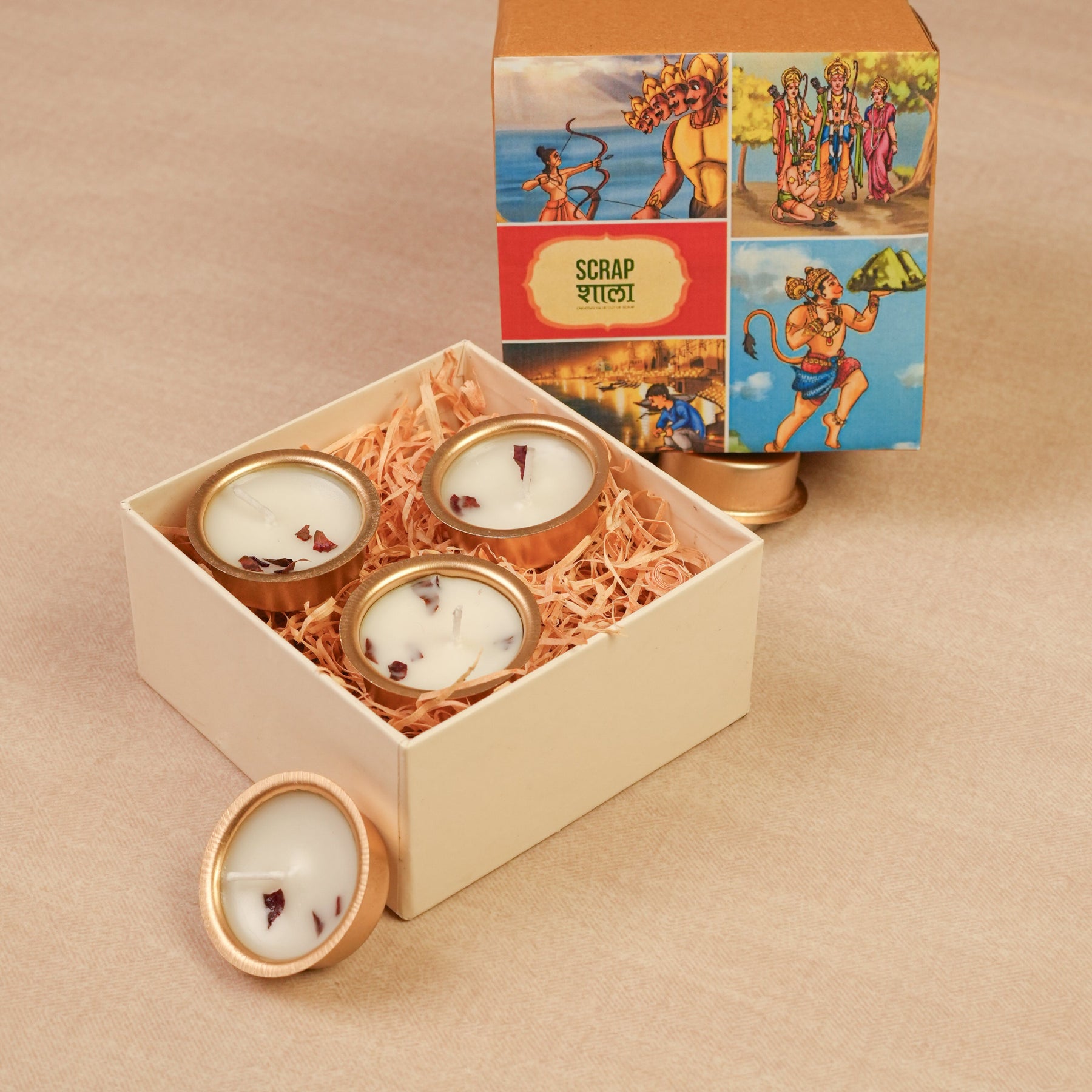 Scrapshala Gold Soy Wax Tealight Pack of 4 | Handcrafted & Sustainable