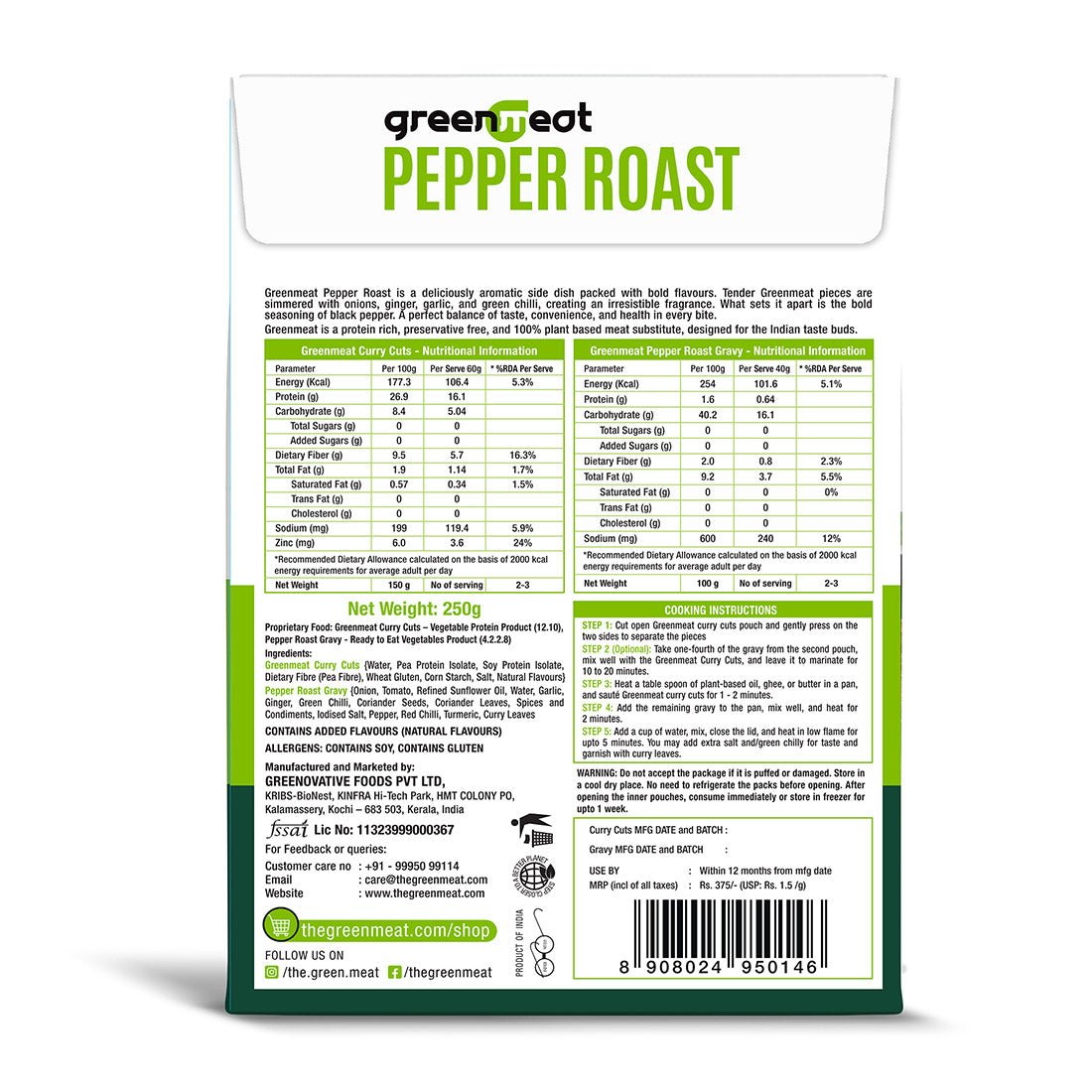 • Healthy, versatile, and 100% plant based Greenmeat in the form of curry cuts / chunks, designed for the Indian Taste Buds.