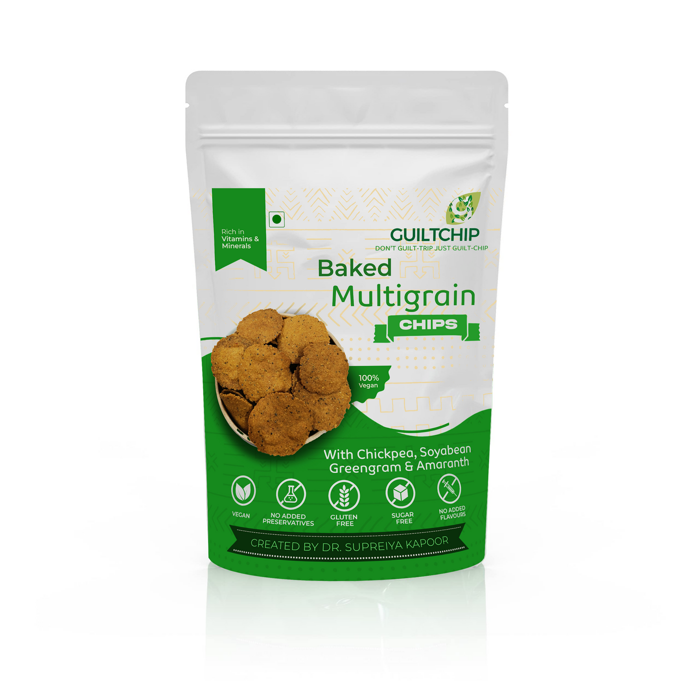 GUILTCHIP Baked Multigrain Chips with Chia Chickpea Soyabean Greengram & Amaranth - 150 gm