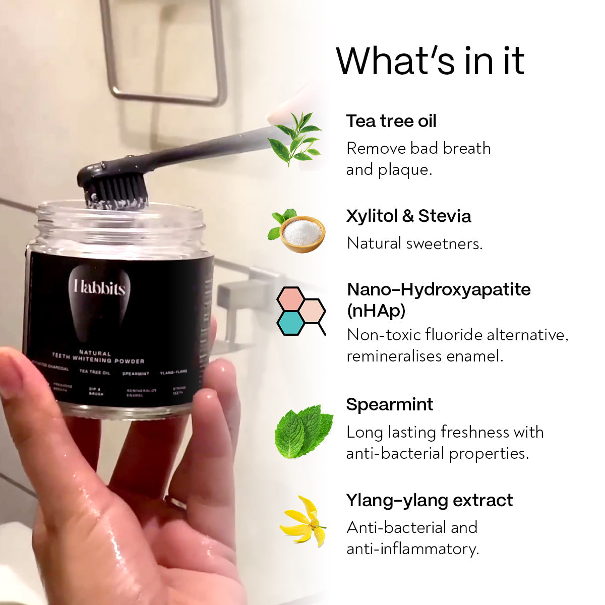 Habbits Charcoal Teeth Whitening Powder - Ylang-yYlang Mint (Pak of 4)