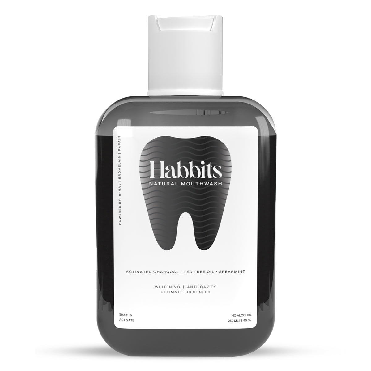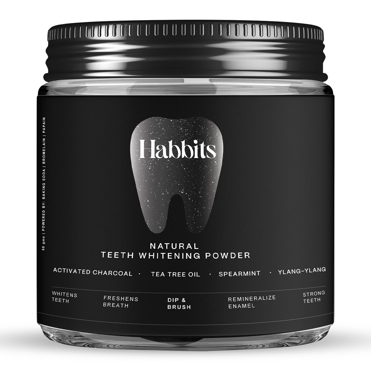 Habbits Natural Oral Care Bundle | Charcoal Mouthwash + Teeth Whitening Powder + Copper Tongue Cleaner + 2 Biodegradable Toothbrushes | FDA Certified | Pack of 4