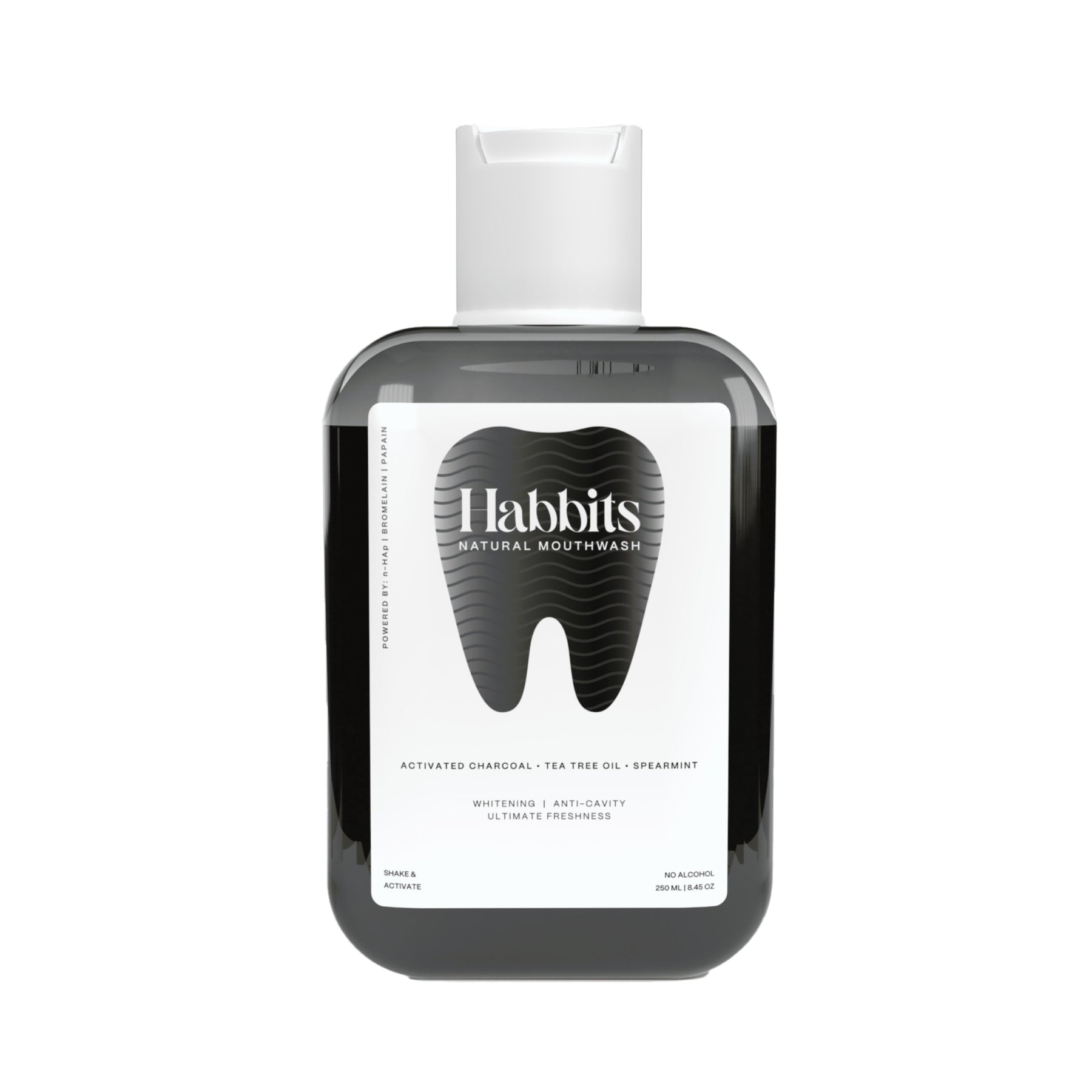 • Fresh Breath & Gum Health: The alcohol-free mouthwash is infused with activated charcoal, nano-hydroxyapatite, spearmint, and tea tree oil to eliminate bad breath, support remineralization, and promote overall oral hygiene—without the burn.