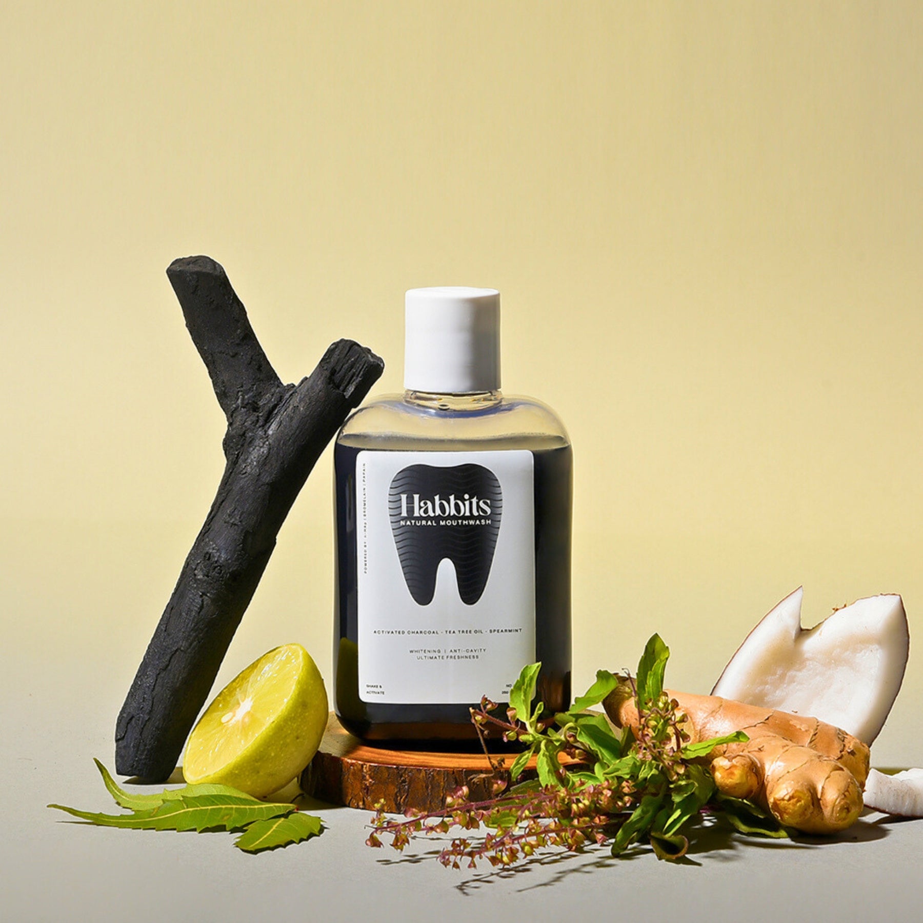 Elevate your oral care routine with the Habbits Natural Oral Care Bundle—a thoughtful combination of clean, sustainable, and effective essentials. This bundle includes a refreshing alcohol-free Mouthwash, a pure Copper Tongue Cleaner, and four biodegradable Wheatstraw Toothbrushes with charcoal-infused bristles. Crafted for those who value wellness and the planet, each product is free from harsh chemicals and designed to promote fresh breath, better hygiene, and a low-waste lifestyle. Fluoride-free, vegan, and proudly made in India—Habbits helps you smile consciously every day.