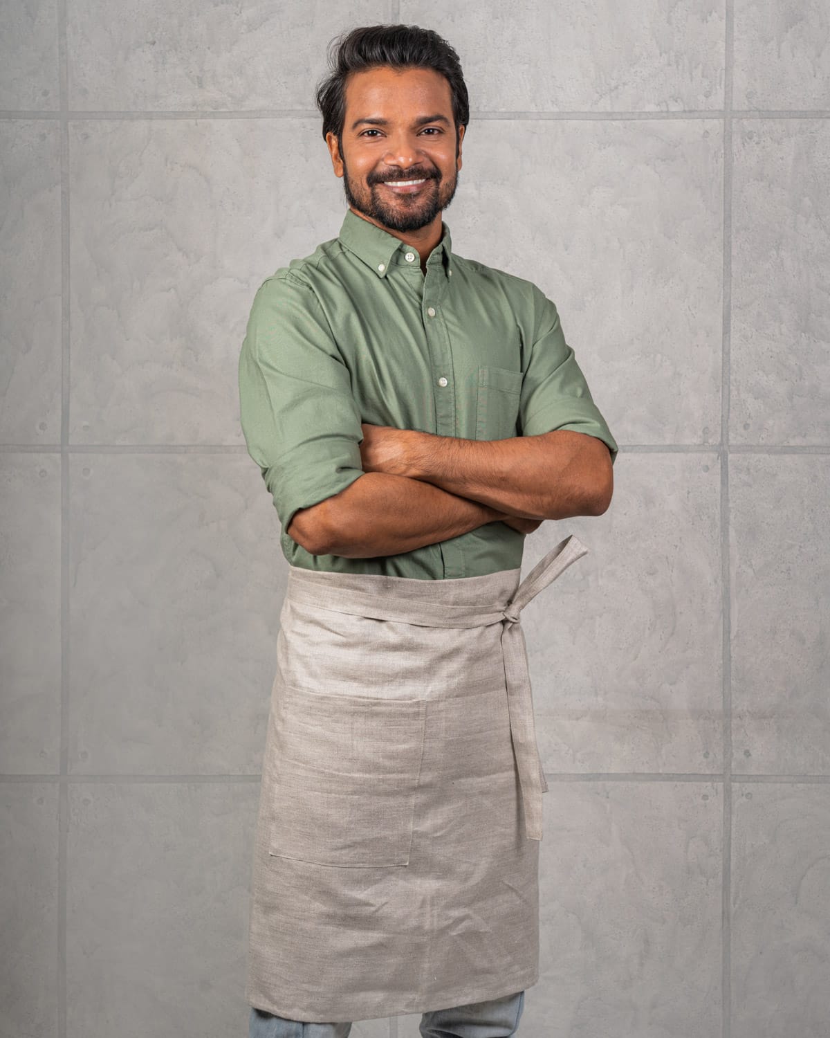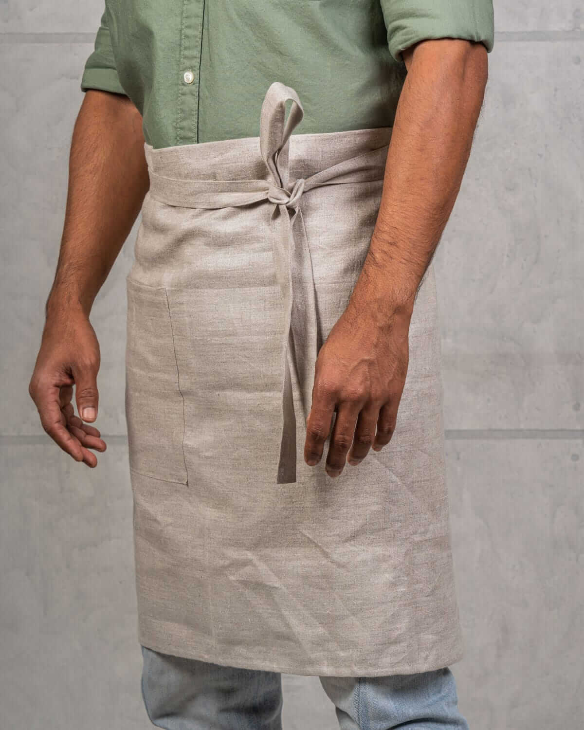 Our half aprons  in 100% sustainable hemp fabric are just ideal for use in the Indian kitchen or even for gardening or doing household chores. Due to their durable nature, these are also ideal for restaurant staff.