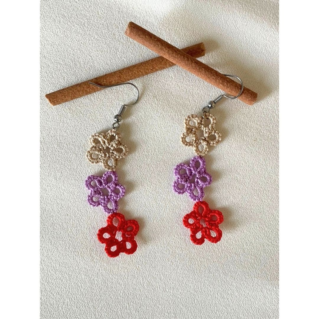 Beautifully crafted with cotton thread using the age-old technique of tatting, these earrings feature intricate lacework created stitch by stitch with shuttle tatting. Handmade with great care, each pair is exclusively crafted using this traditional method. These super cool, extremely lightweight earrings are versatile enough to complement any attire, ensuring you can wear them all day with ease. As artisanal items entirely made and decorated by hand, small imperfections denote the originality of the product. So, hop on board and add a touch of artisanal charm to your ensemble!
