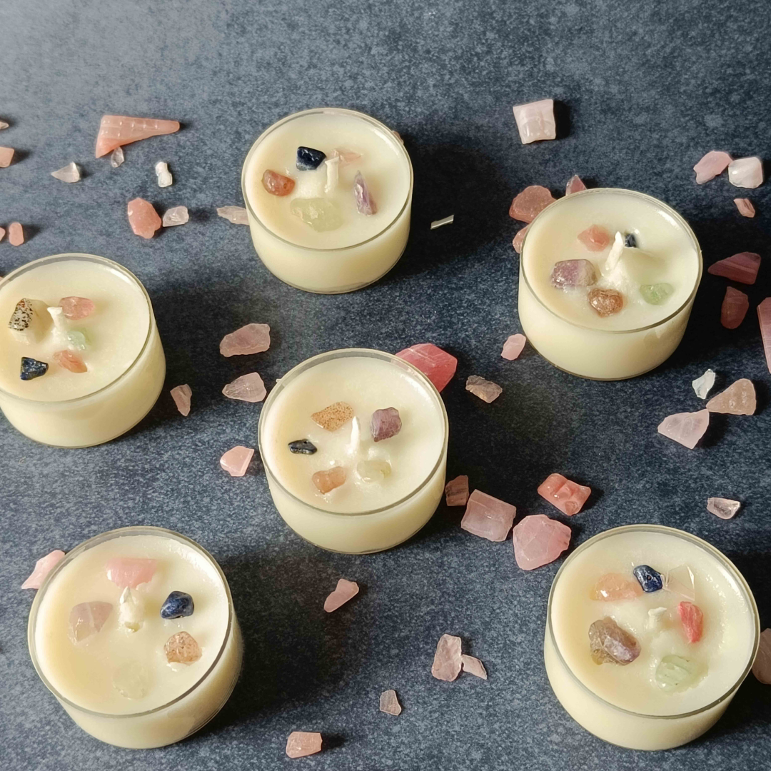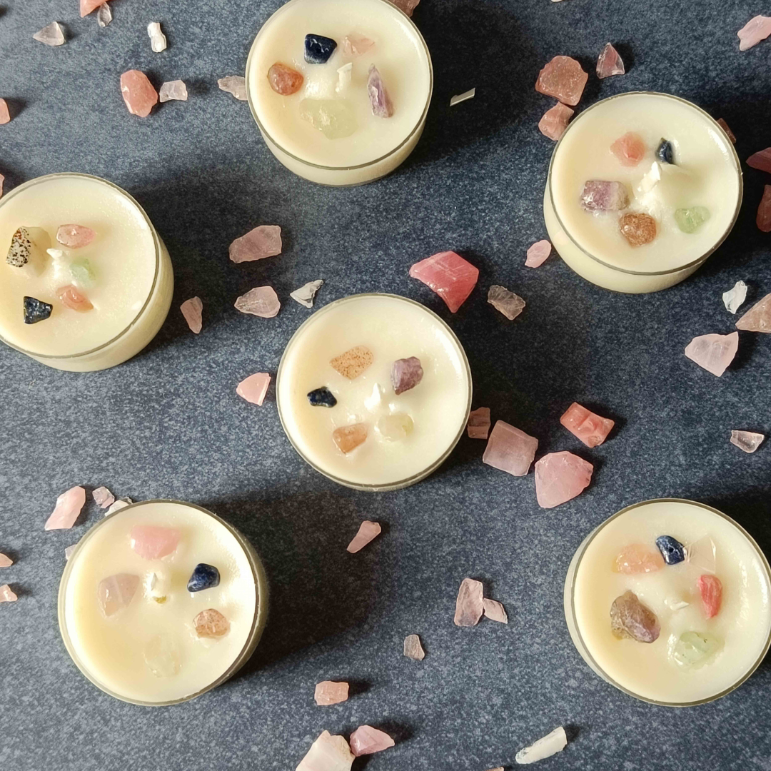 Our Healing Crystal Tealights are candles that contain natural gemstones to provide specific benefits. These crystals work together to create a calming atmosphere that enhances meditation, yoga, and other spiritual activities. They are also an elegant addition to home decor and come in various colors and styles. Healing crystal tealights are a convenient way to utilize the healing power of crystals in daily routines, offering emotional healing, stress relief, and spiritual enhancement.