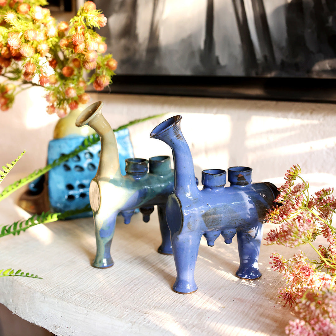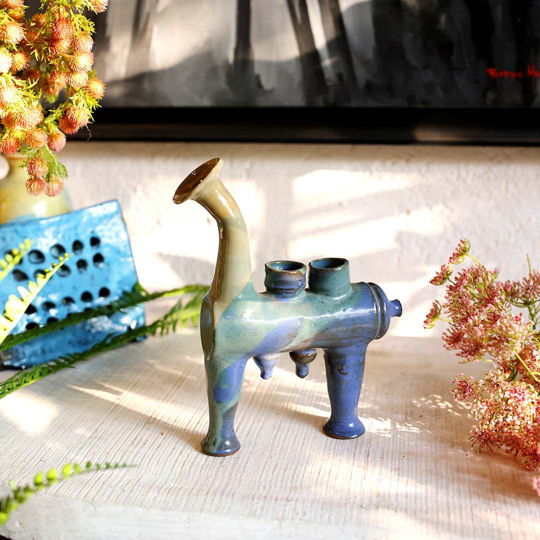 Emanate a sense of healing and tranquility with this captivating candle stand. Inspired by the profound wisdom of Eastern philosophy which says that chakras are the energy centers of our body governing different aspects of our well-being, this modern candle stand is a fusion of art and healing that aims to balance these energy centers of the body. Crafted from ceramics and adorned with natural glazing, this sculpture is inspired by the healing power of abstract art. With its soothing teal and moss-green colours, this candle stand invites tranquility into your space, fostering a harmonious atmosphere.