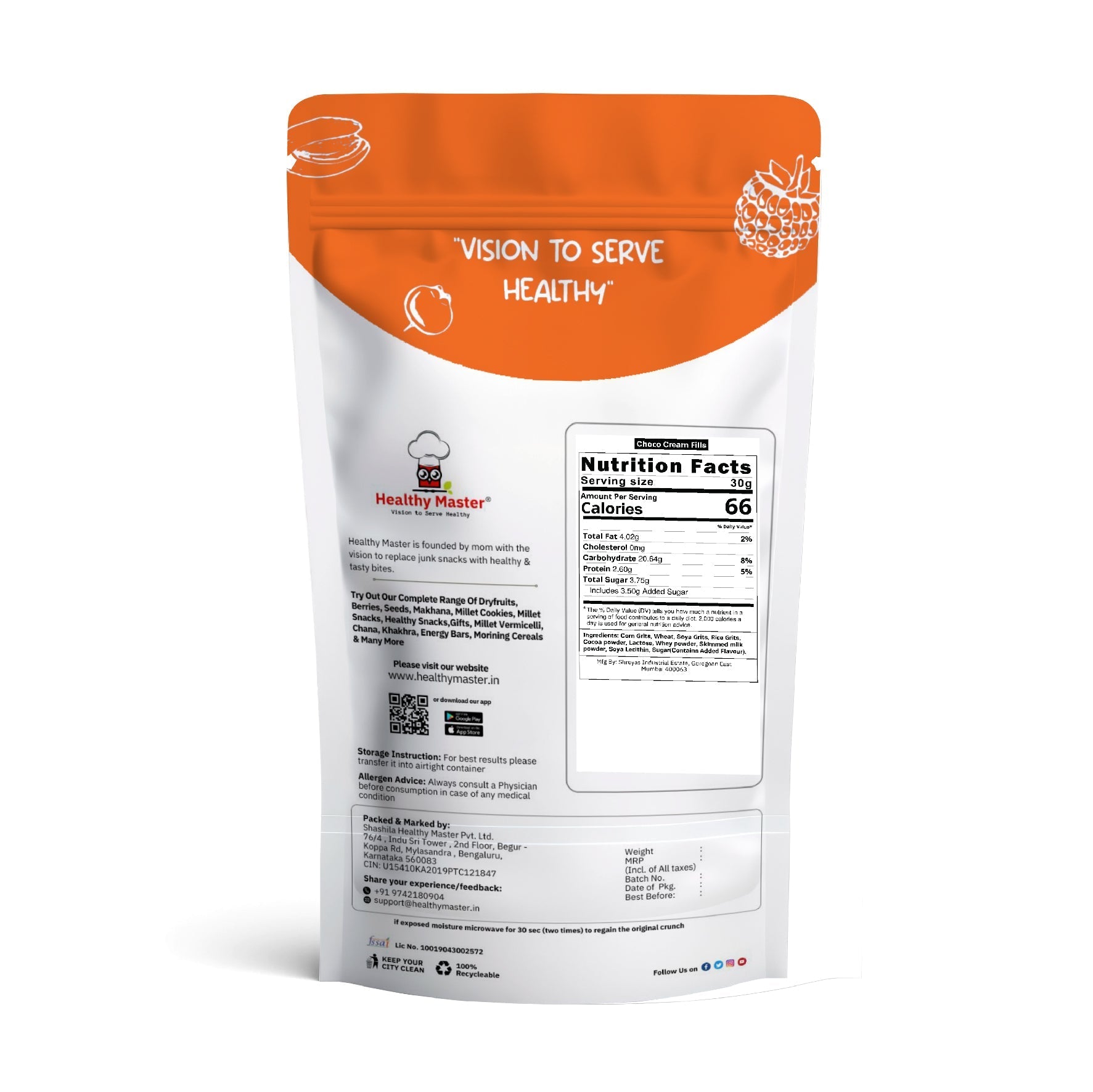 Healthy Master Choco Cream Fills – Indulge in the perfect balance of crispy outer layers and rich, creamy chocolate filling. These delicious bites are made with wholesome ingredients, offering a satisfying crunch with every bite. A guilt-free treat for chocolate lovers, ideal for kids and adults alike. Enjoy them as an anytime snack, tea-time delight, or a sweet craving fix!