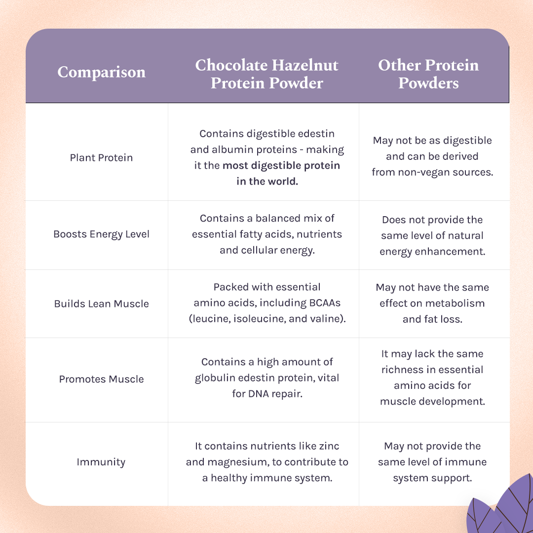 Get ready to treat yourself to something truly delightful - with an irresistible mouthwatering Chocolate Hazelnut flavor. We've taken raw hemp seeds, packed with all the good stuff your body loves, and added rich flavors of dense chocolate and roasted hazelnut. This protein powder is made from raw hemp seeds and pea protein concentrate. They offer complete protein and essential amino acids. Plus, they have healthy fats like omega-3 and omega-6 that are good for your heart, and brain, and help with inflammation.