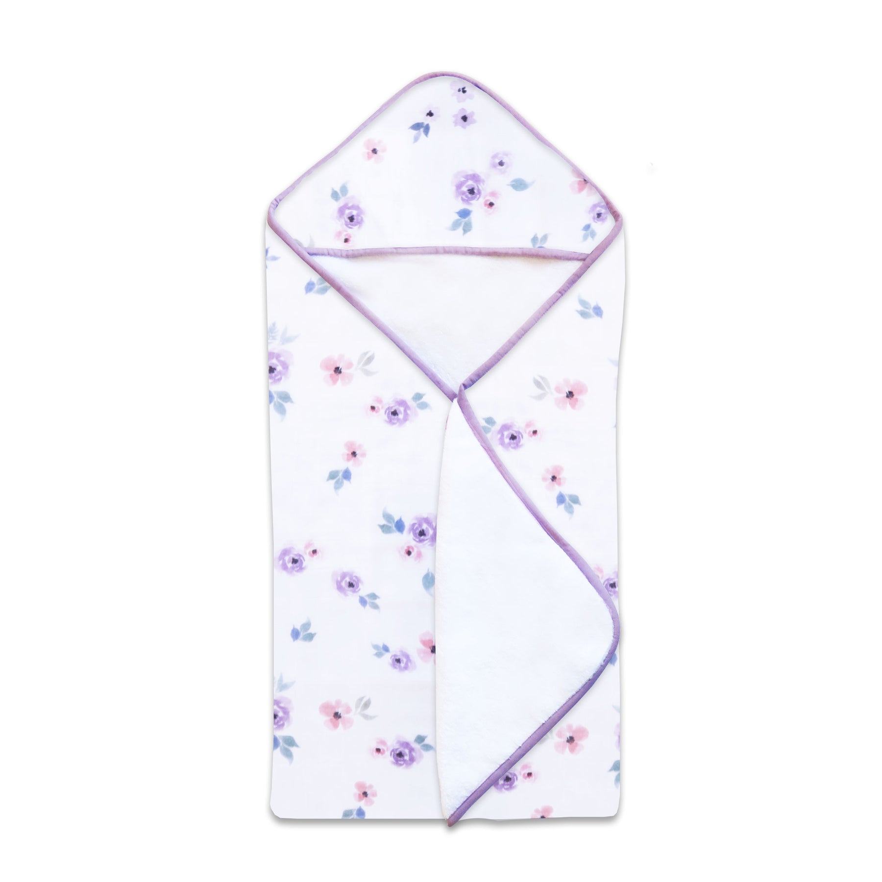 Splash into bath time with a plush and absorbent hooded towel. Featuring printed bamboo muslin on the outside and ultra-soft terry cloth on the inside, plus a hood for keeping your little one cozy!