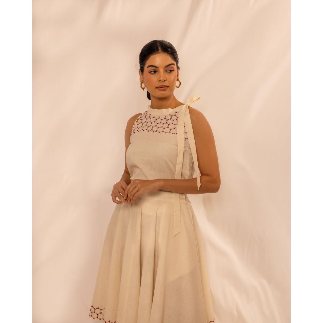 Our Tie Detail Top has been styled with the Kantha Skirt that can be purchased separately.