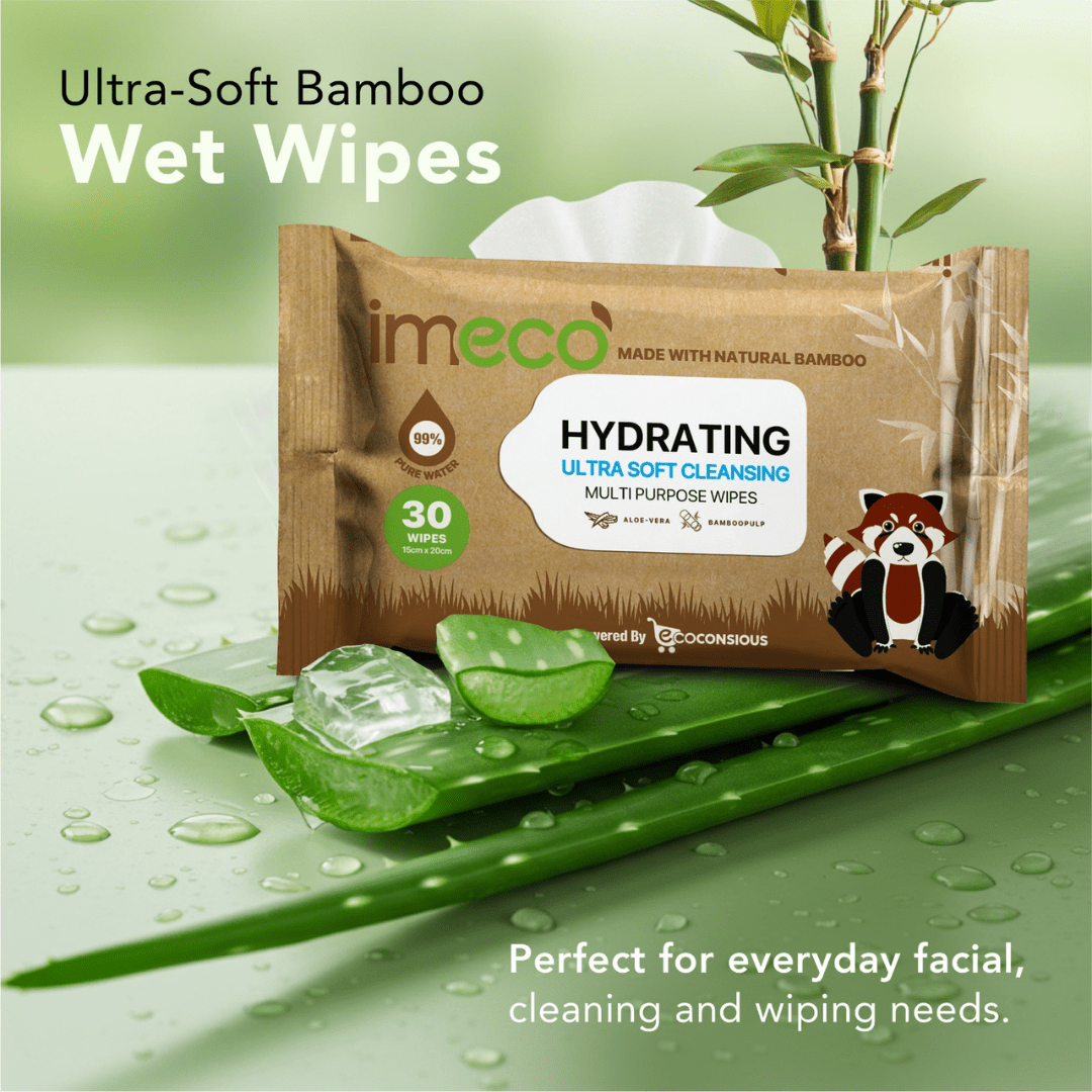 IMECO Bamboo Daily Cleansing Face Wipes with Aloe - Vera | Ulta - Soft Hydrating Wet Wipes | 30 Pulls - Suspire