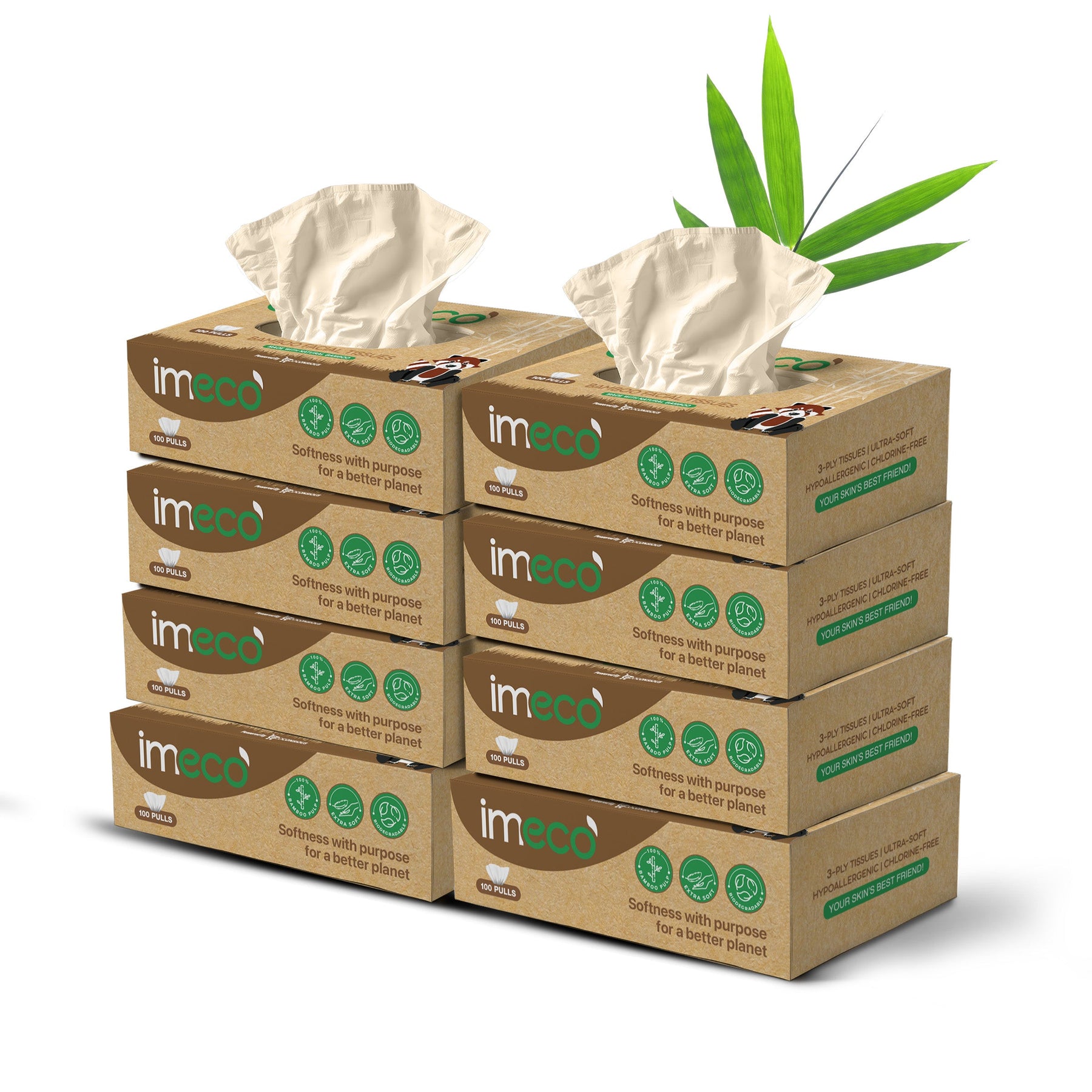 IMECO Bamboo Facial Tissue | Soft & Highly Absorbent | 2-Ply | 100 Pulls