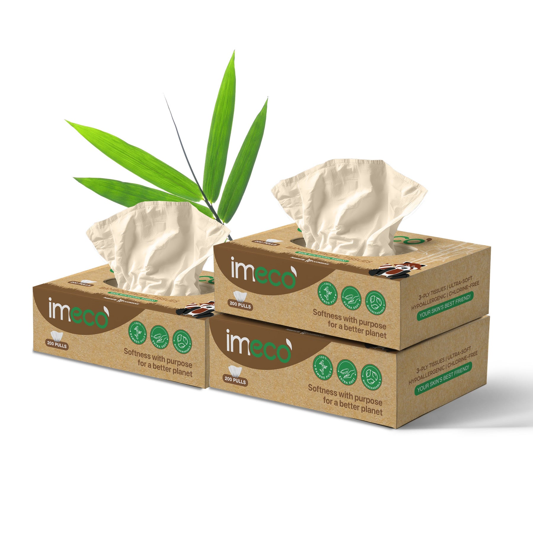 IMECO Bamboo Facial Tissue | Soft & Highly Absorbent | 2-Ply | 200 Pulls