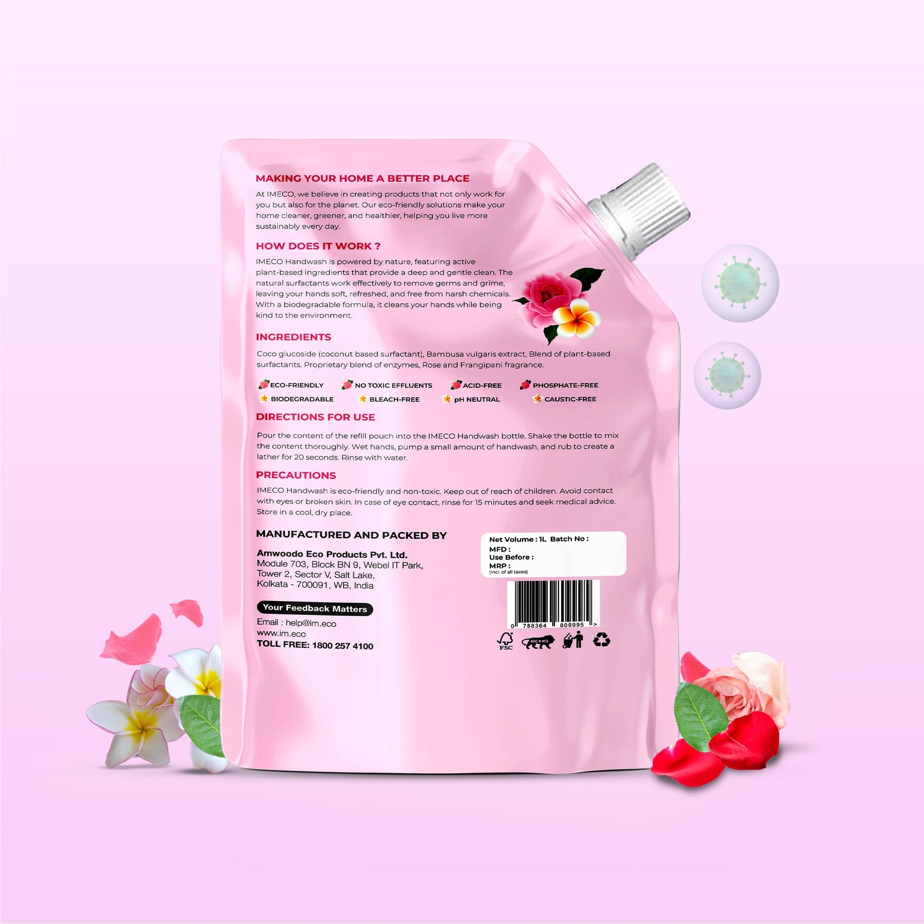 IMECO Bath & Beauty Natural Handwash Liquid is a gentle yet powerful cleanser, designed to protect your hands while caring for the planet. Powered by plant-based ingredients, this eco-friendly handwash uses natural surfactants and enzymes to remove germs and dirt without harsh chemicals. The biodegradable formula ensures a thorough clean while leaving your hands soft and refreshed. Infused with the soothing fragrance of rose and frangipani, it provides a delightful handwashing experience. Free from toxic effluents, bleach, and phosphates, IMECO Handwash is safe for everyday use and ideal for families looking to maintain a sustainable, eco-conscious lifestyle. Keep your hands clean, moisturized, and fragrant with this biodegradable, non-toxic handwash that works for you and the environment.