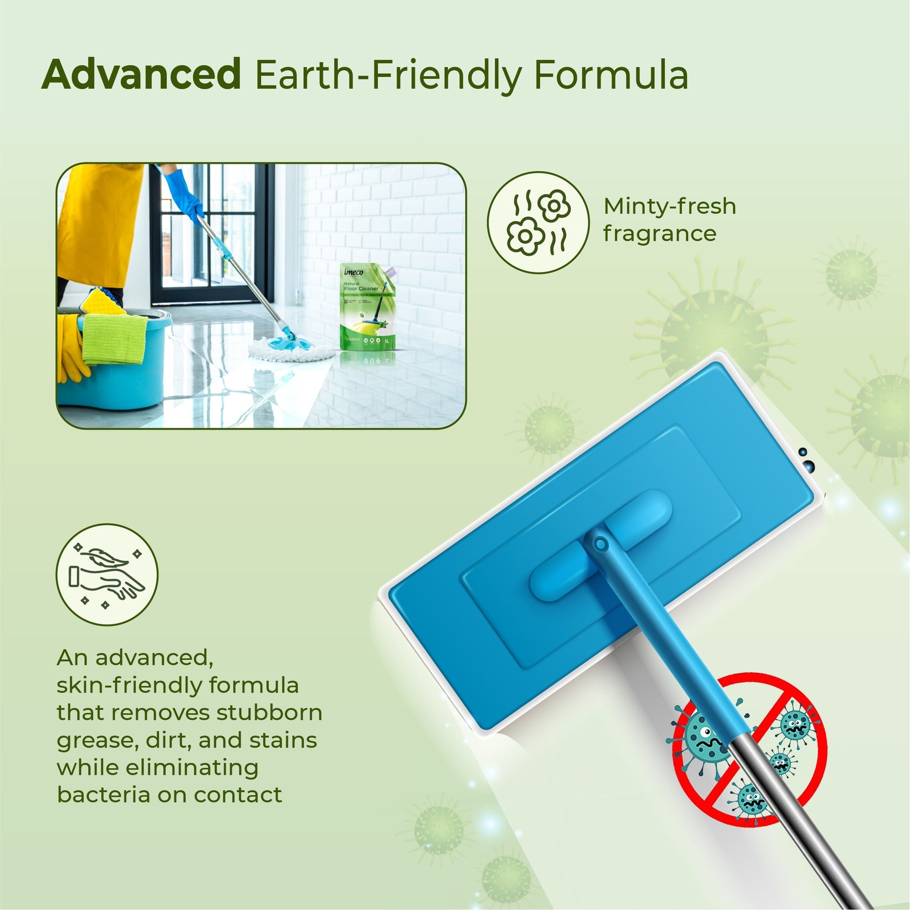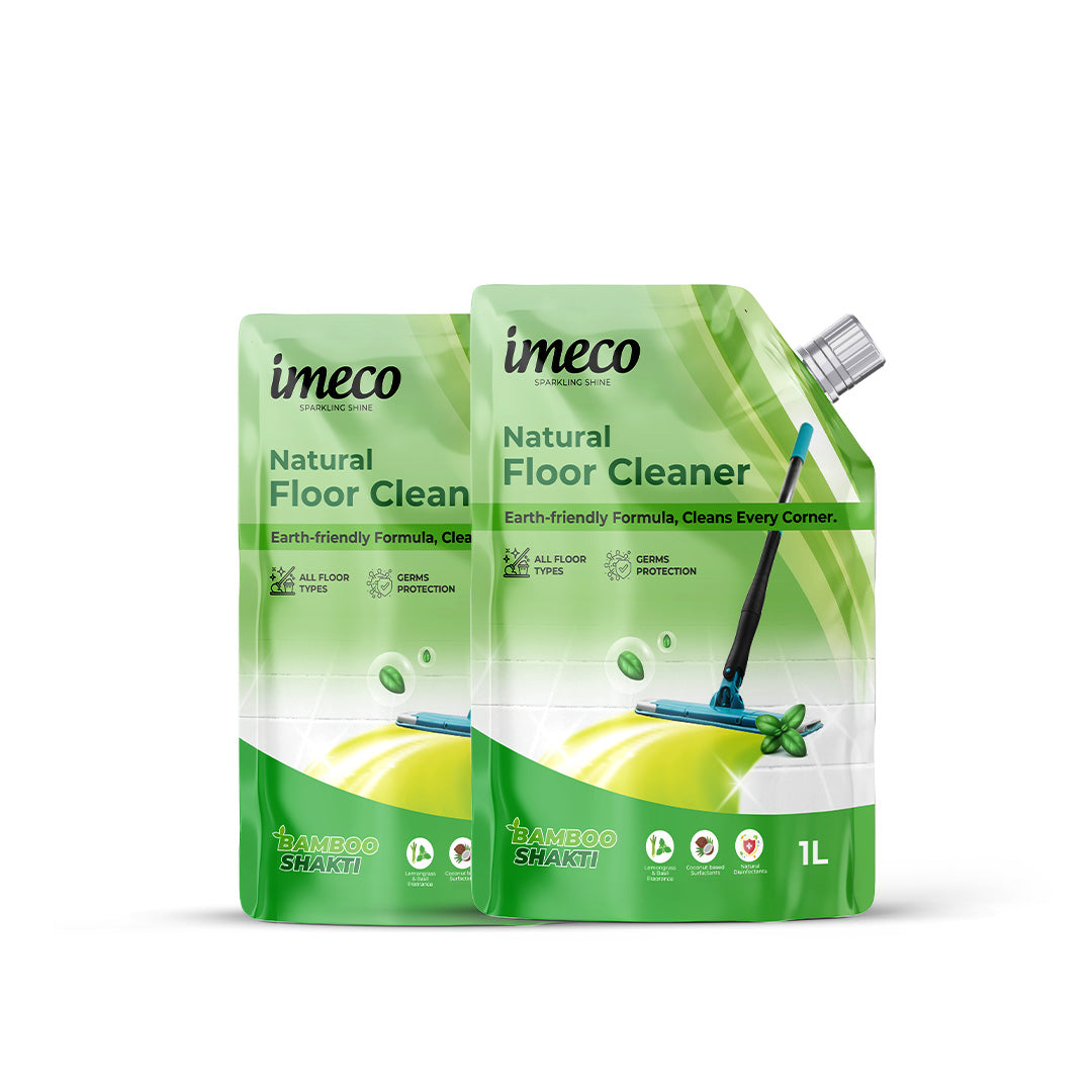 IMECO Bamboo Shakti Floor Cleaner 1L (Pouch) - Lemongrass & Basil Fragrance for All-Purpose Tile, Floor & Wall Cleaner
