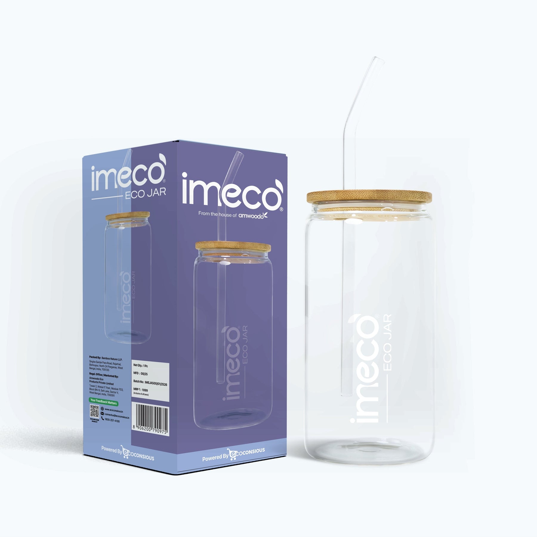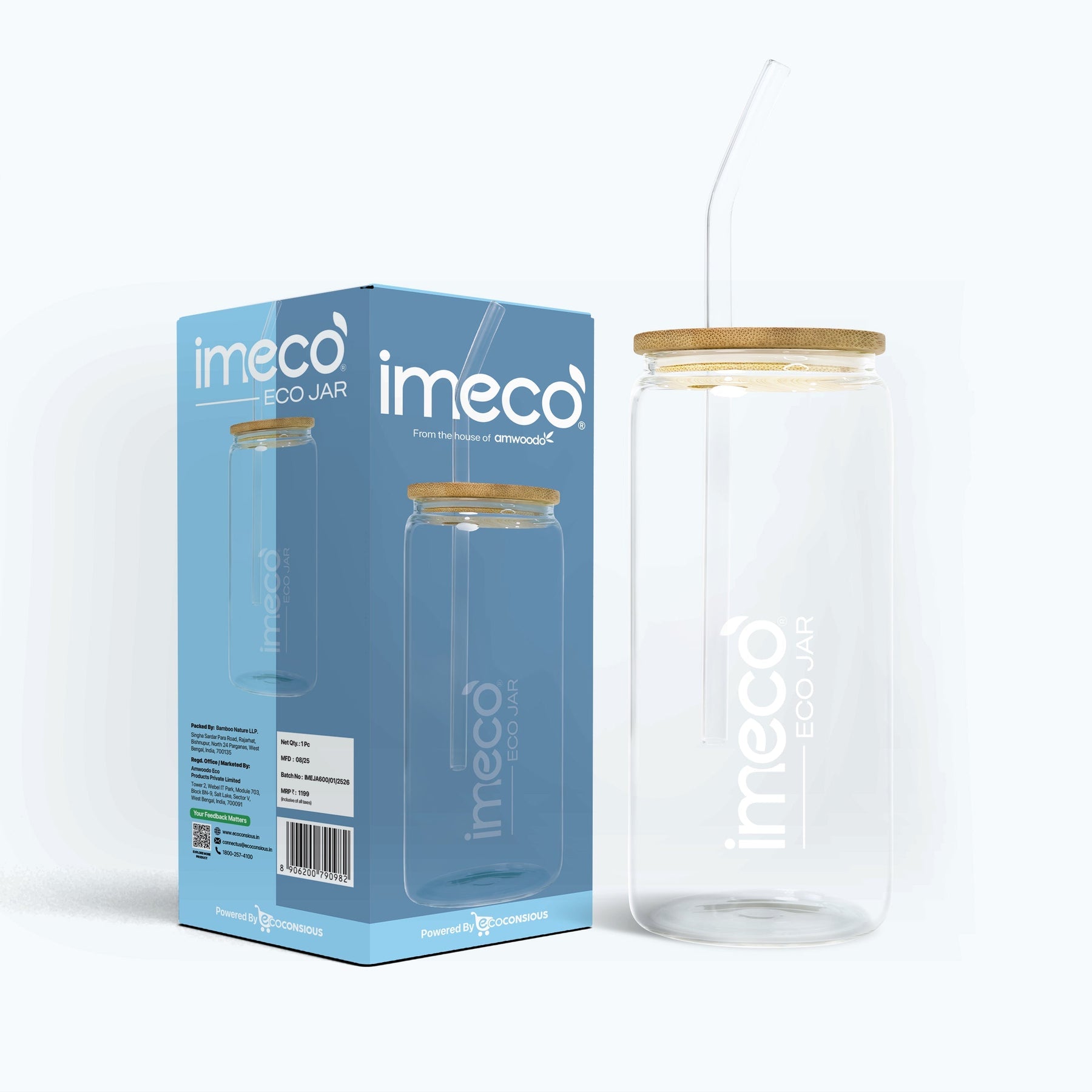 IMECO ECO JAR Glass Sipper with Bamboo Lid – Lightweight & Borosilicate Glass  | Stylish, BPA-Free & Leak-Proof | Compact, Odour-Free & Travel-Ready | Ideal for Smoothies, Juices, Water & Daily Hydration