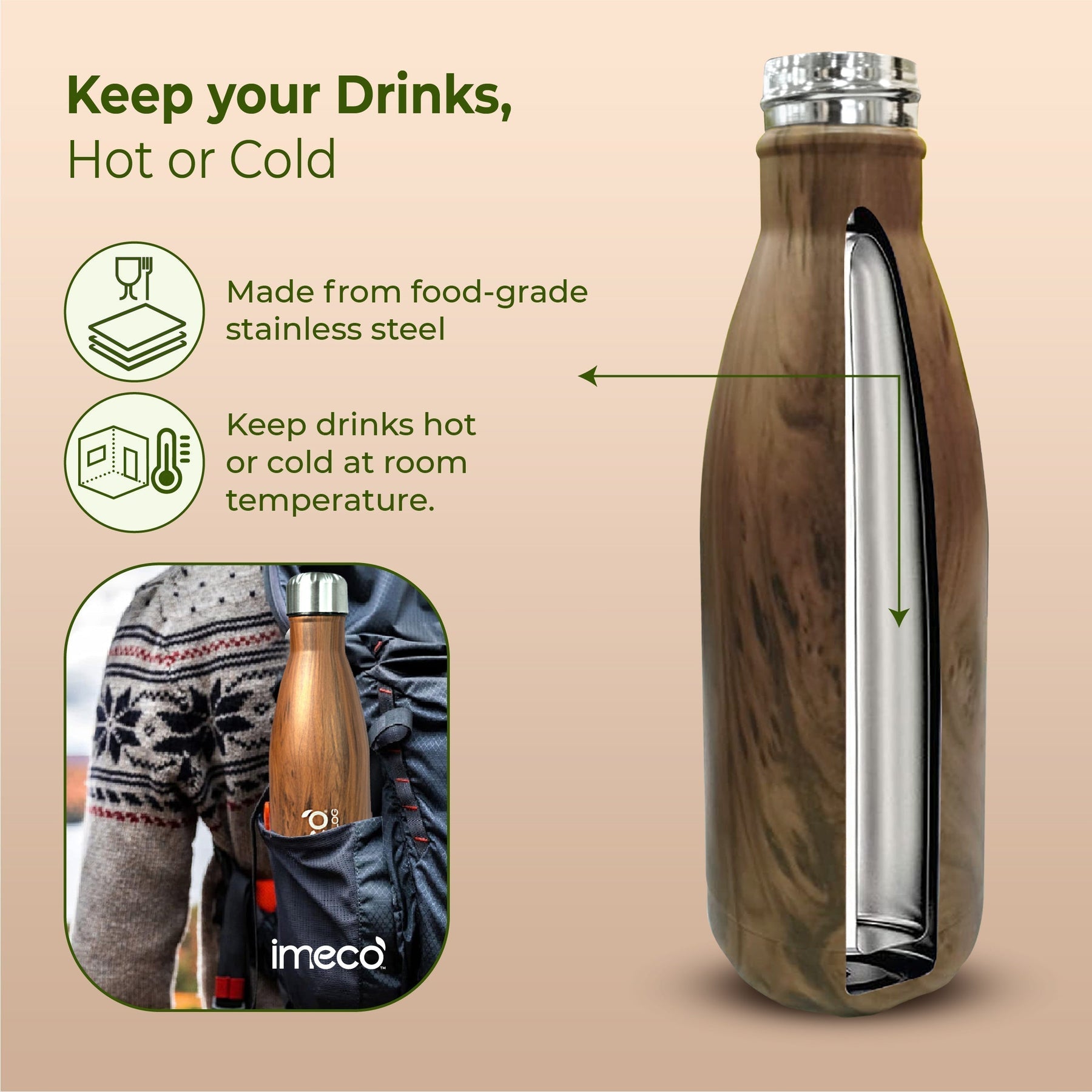 IMECO ECO LOG Stainless Steel Water Bottle (500 ml, Brown) | BPA-Free, Leak-Proof & Travel-Ready | Lightweight, Reusable & Durable | Perfect for Office, School, Gym & Outdoor Use