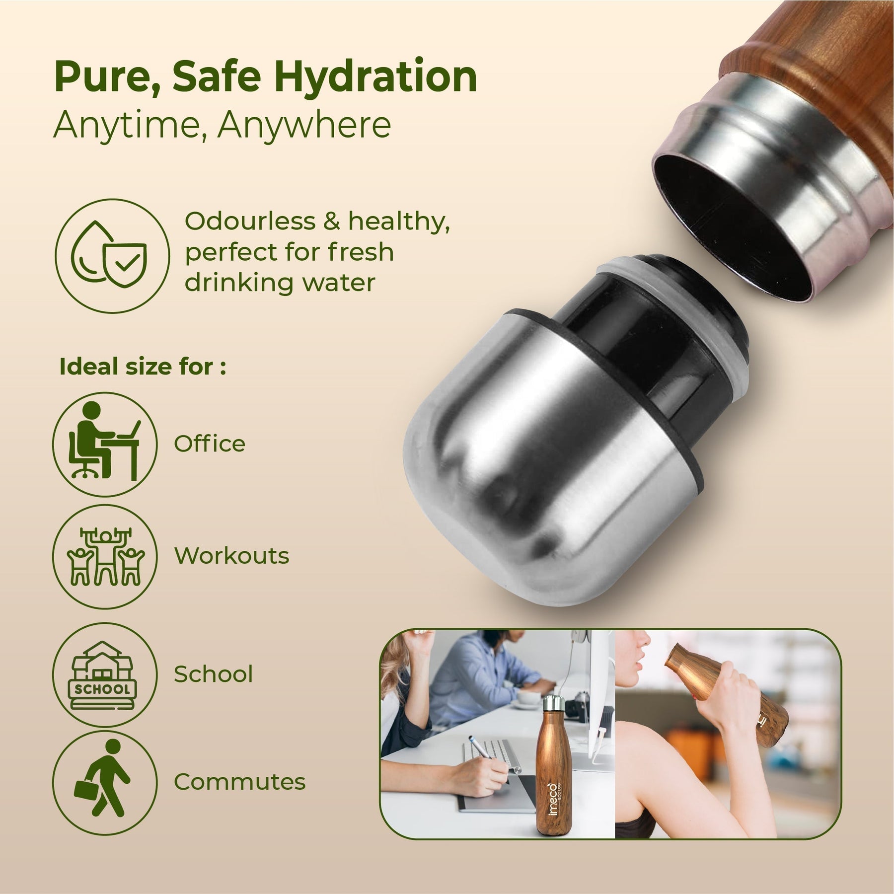IMECO ECO LOG Stainless Steel Water Bottle (500 ml, Brown) | BPA - Free, Leak - Proof & Travel - Ready | Lightweight, Reusable & Durable | Perfect for Office, School, Gym & Outdoor Use - Suspire