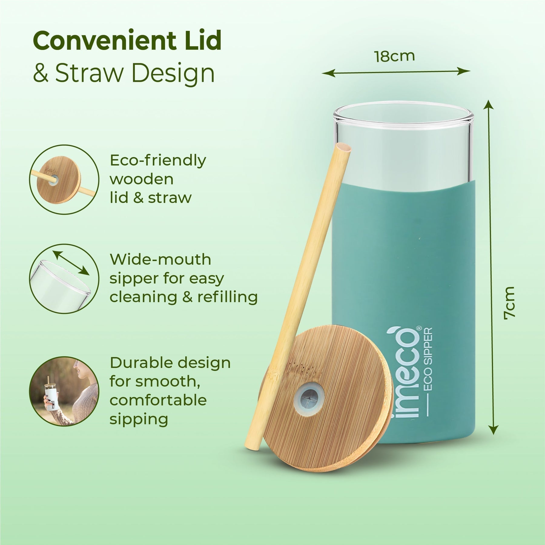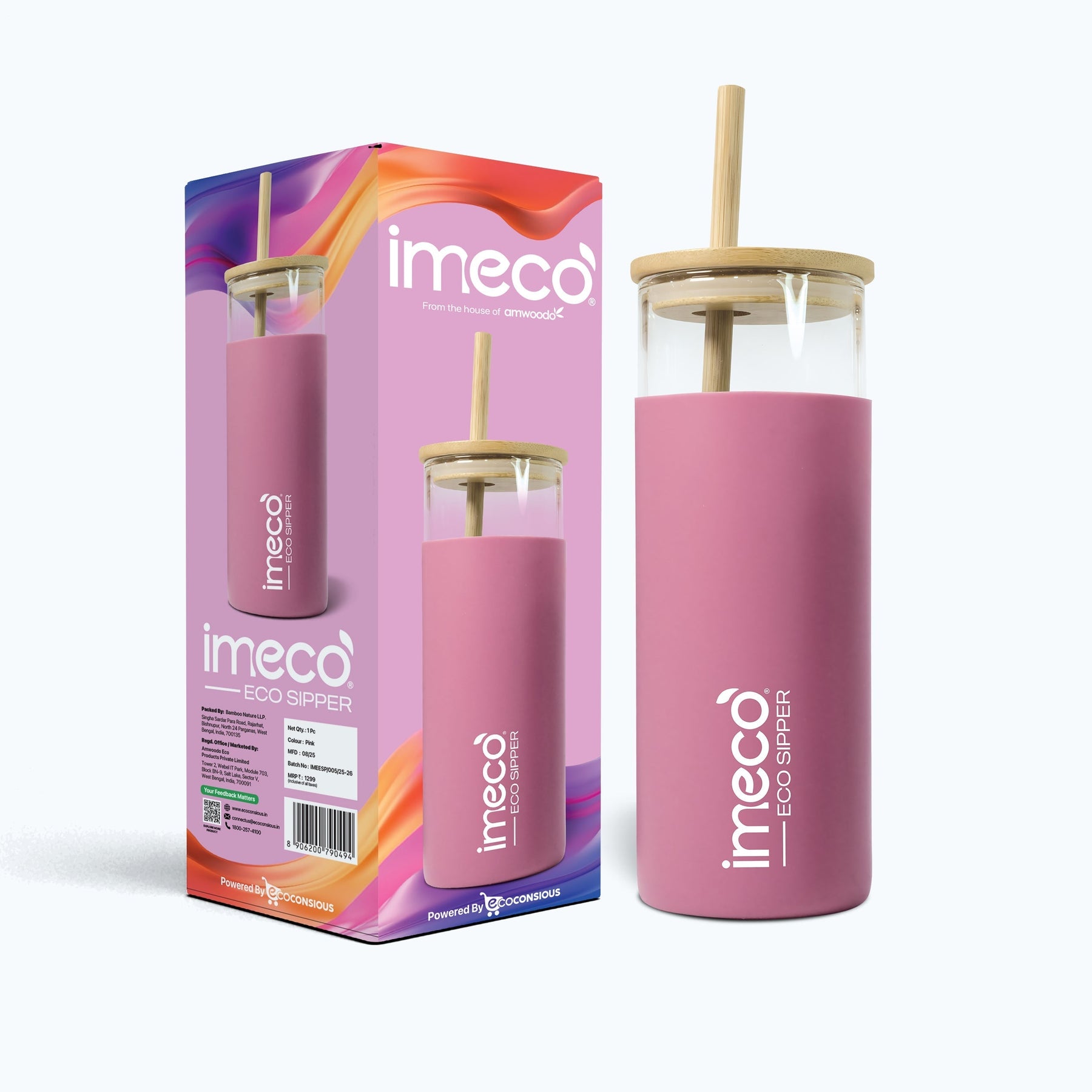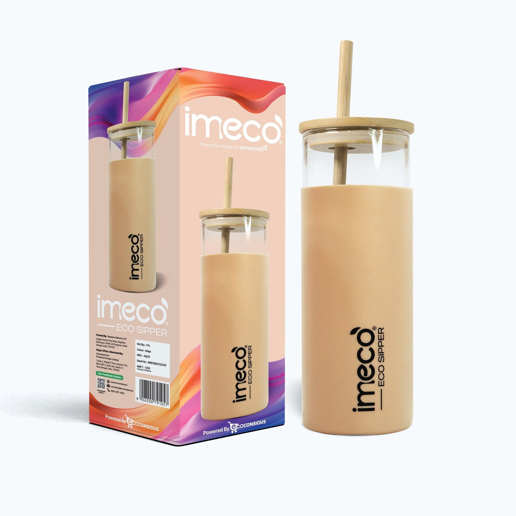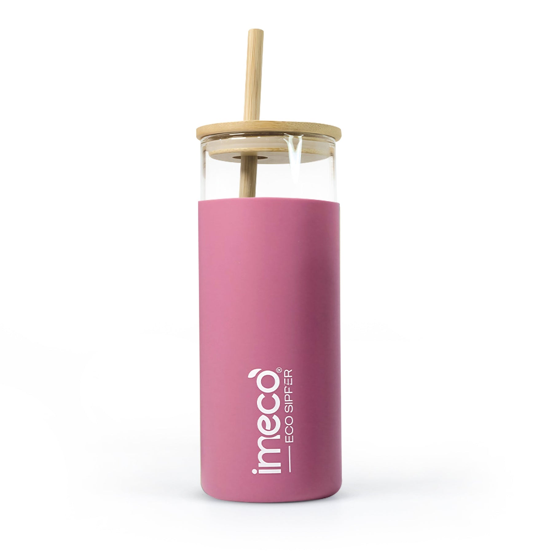 Level up your hydration with the IMECO Glass Sipper, crafted from high-quality borosilicate glass, This tumbler is designed to handle temperature changes, making it ideal for your favorite hot or cold beverages. The stylish bamboo lid and reusable straw add a touch of eco-friendly charm, while the vibrant silicone sleeve gives you a secure grip and extra protection. Whether you're sipping on coffee, tea, smoothies, or just plain water, this tumbler easily fits your lifestyle. Its compact, leak-proof design makes it super easy to take anywhere-perfect for home, work, the gym, or any outing. Ditch the single-use plastics and embrace a greener way of living with this reusable glass tumbler. Thoughtfully designed for the modern eco-conscious individual, the IMECO Glass Sipper is your perfect partner for chic to soothe your hydration, blending aesthetics with everyday practicality.