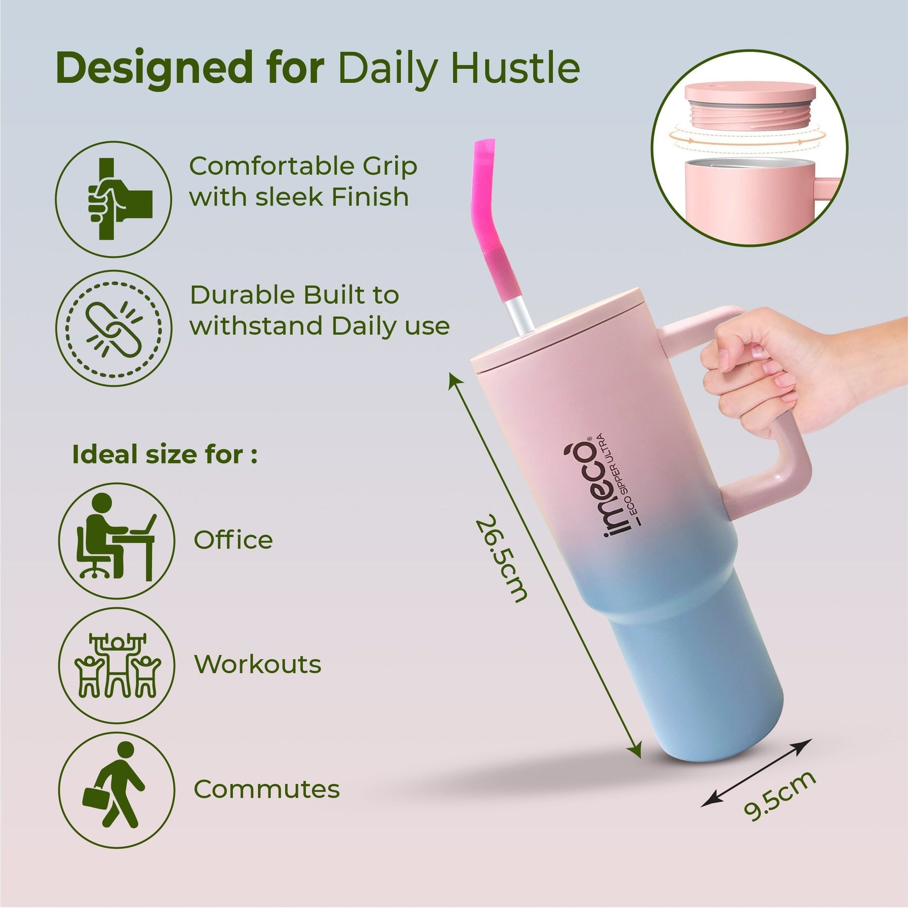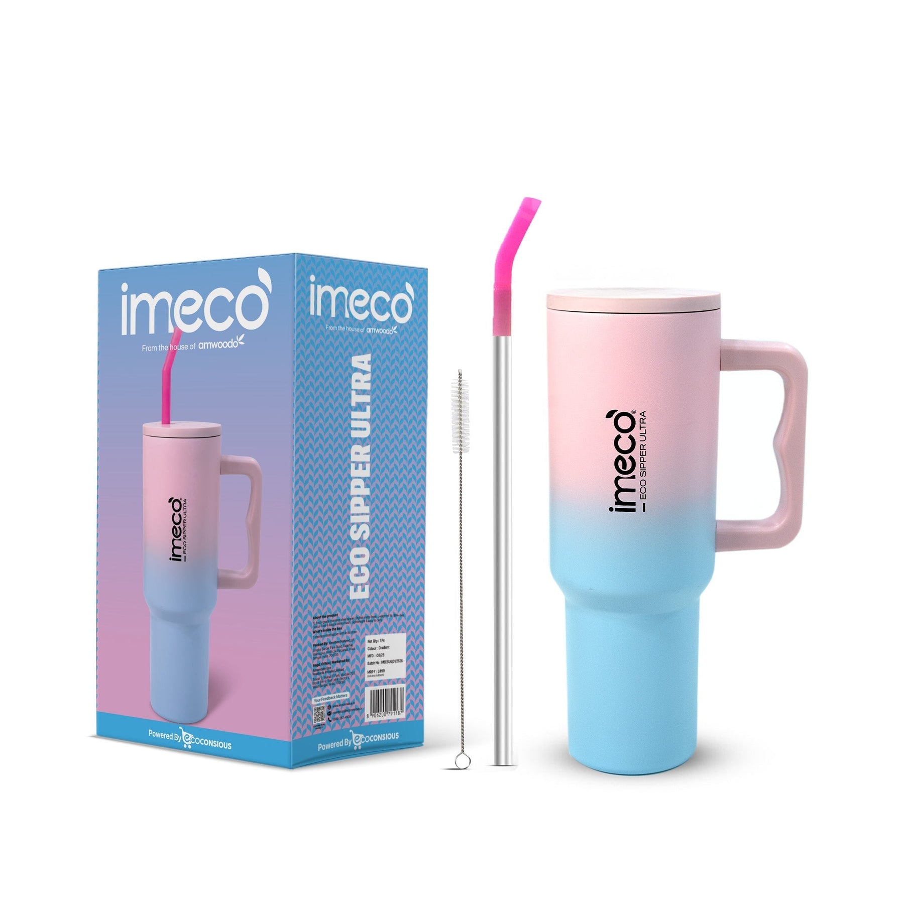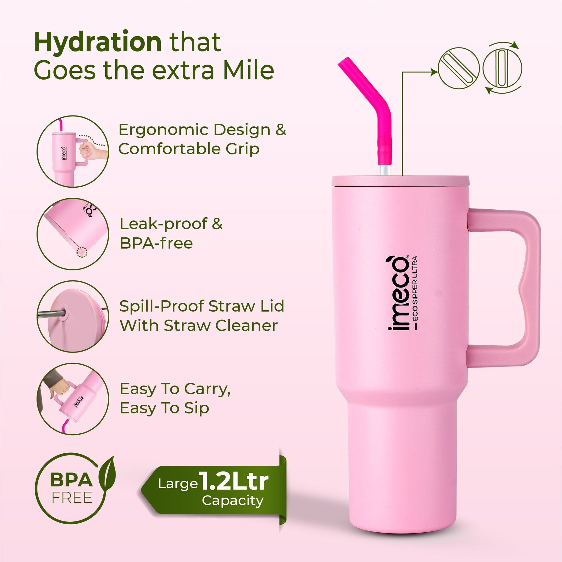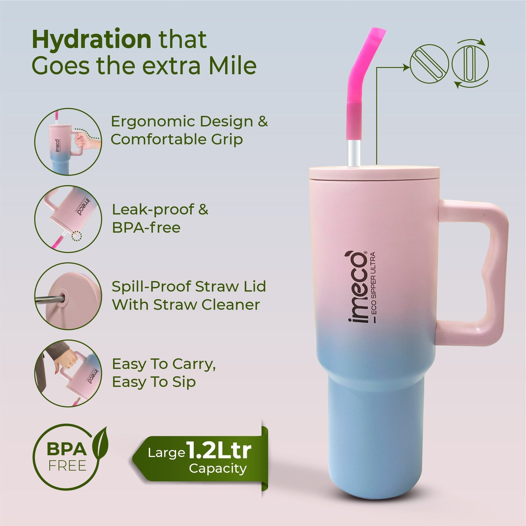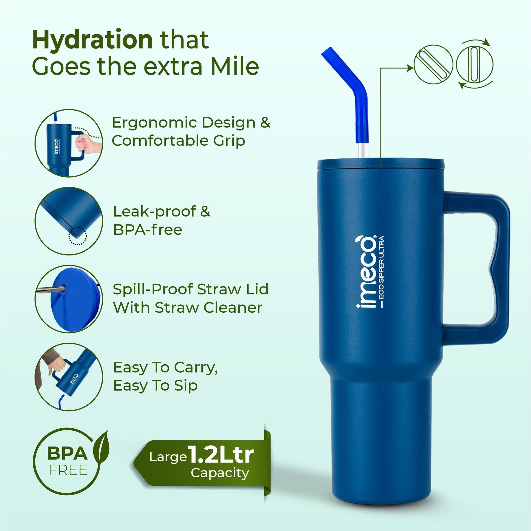 IMECO ECO SIPPER ULTRA Stainless Steel Sipper with Straw & Straw Cleaner (1.2L) | BPA-Free, Leak-Proof & Travel-Ready Tumbler | Reusable, Lightweight & Durable | Perfect for Gym, Office, School & Daily Use