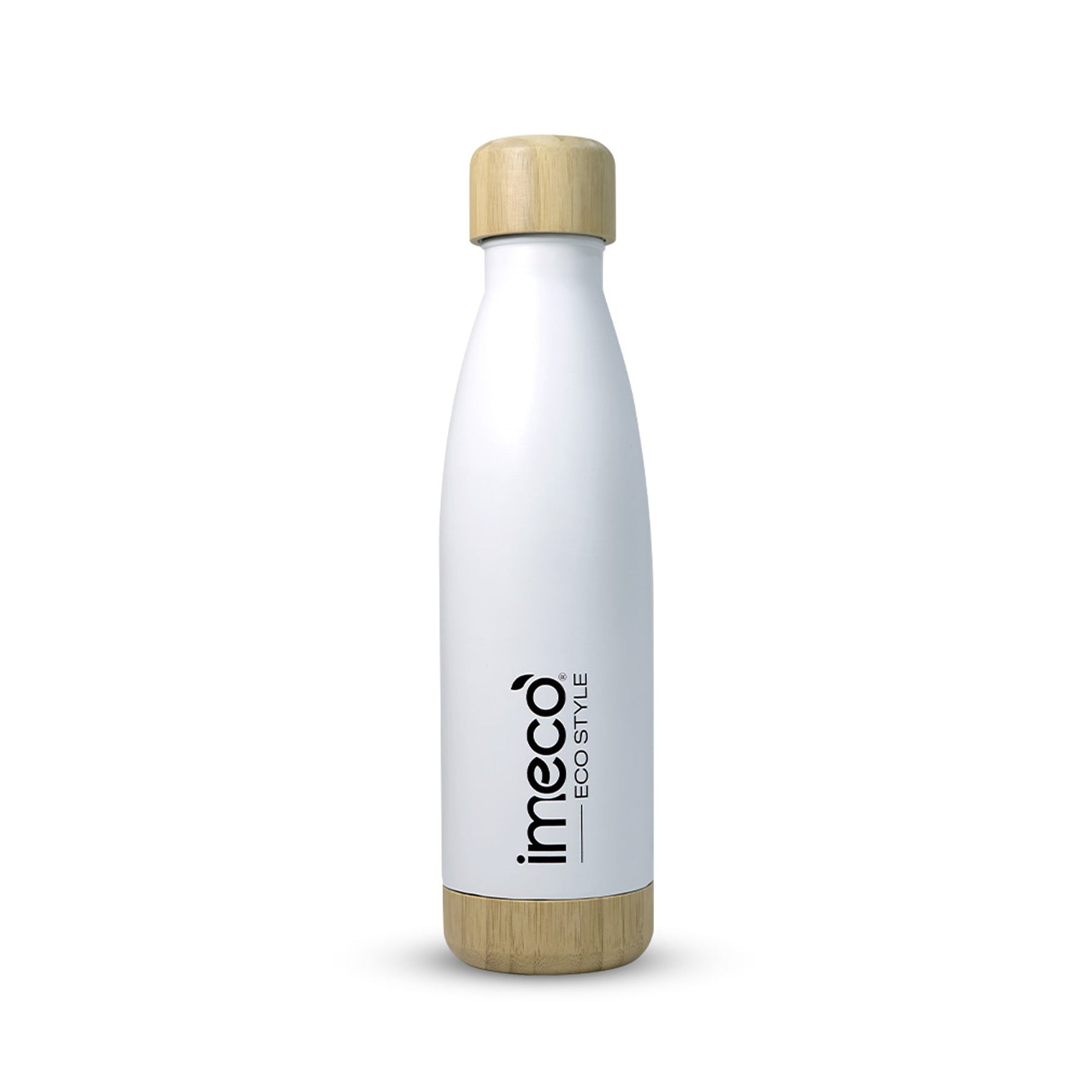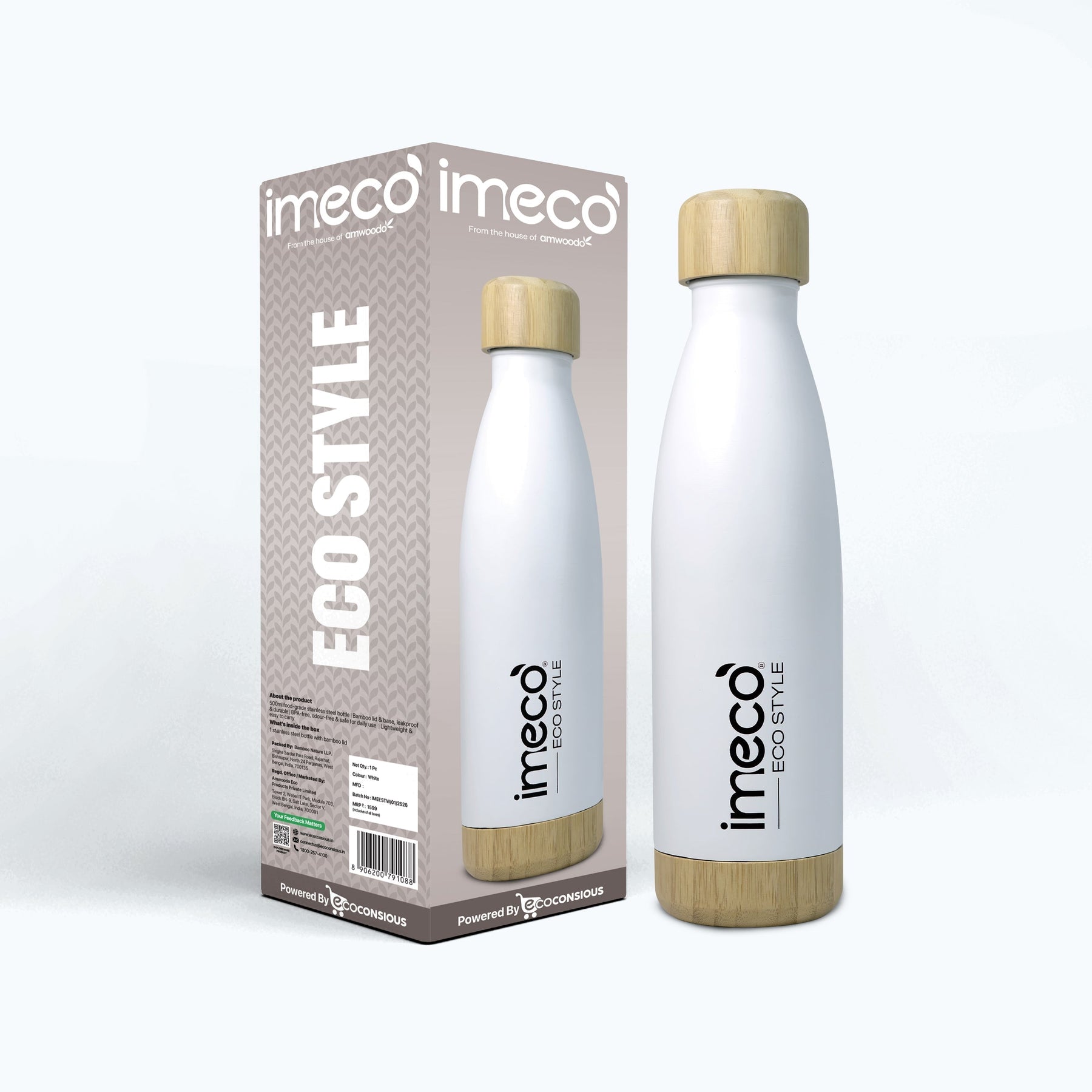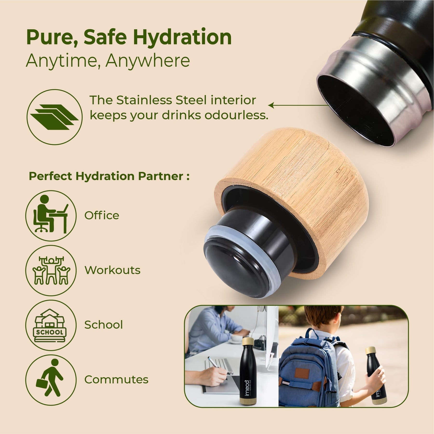 IMECO ECO STYLE Stainless Steel Water Bottle with Bamboo Base – 500 ml | BPA-Free, Leak-Proof & Travel-Friendly | Food-Grade Steel, Lightweight & Eco-Friendly for Office, School & Gym