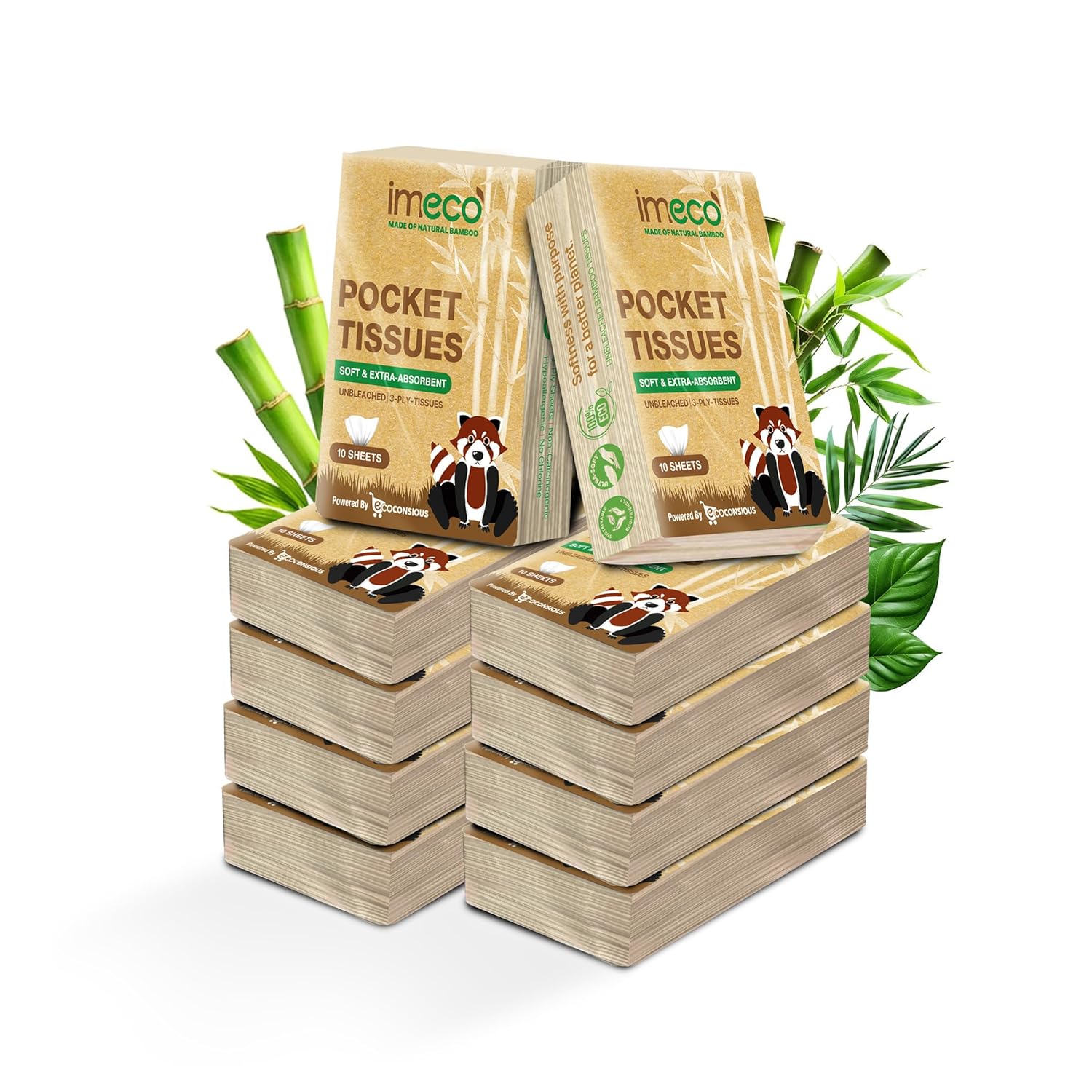 IMECO Facial Pocket Tissue 100 Pulls Combo | 10 Pulls Per Pack | Soft, Gentle & Travel - Friendly | For Home, Office & On - the - Go Use - Suspire