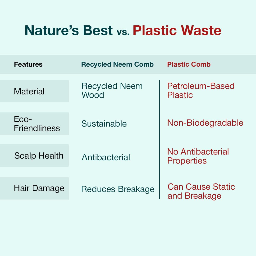 Eco-Friendly & Sustainable: Made from sustainably sourced neem wood, this comb offers a biodegradable and plastic-free option compared to traditional hair tools. Its sturdy, handcrafted design guarantees durability and minimizes environmental harm.