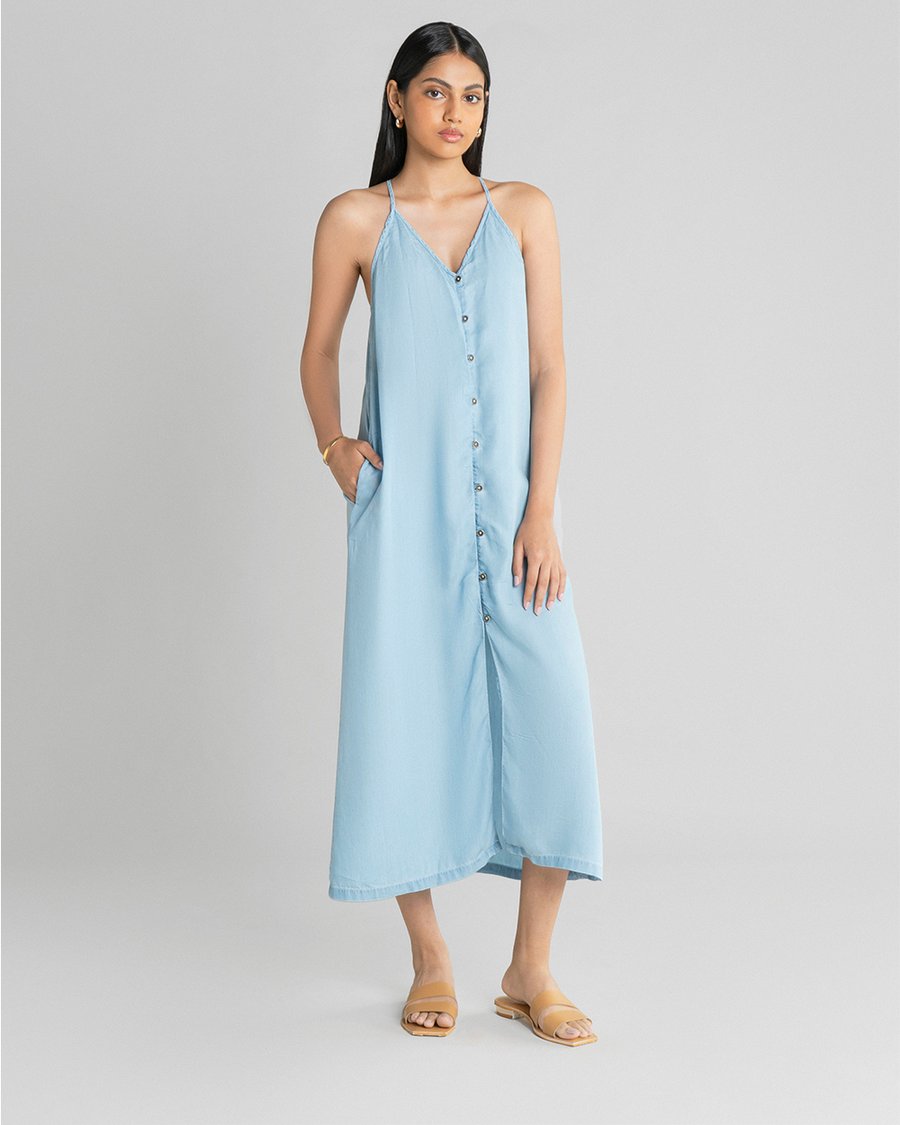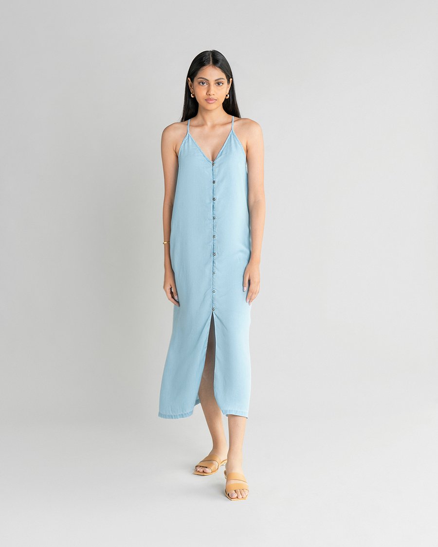 It's so easy to dress this slip dress up or down! Simply add heels and a belt or sneakers and a top knot to suit your style. The adjustable strap and slit in front add classic details we love.