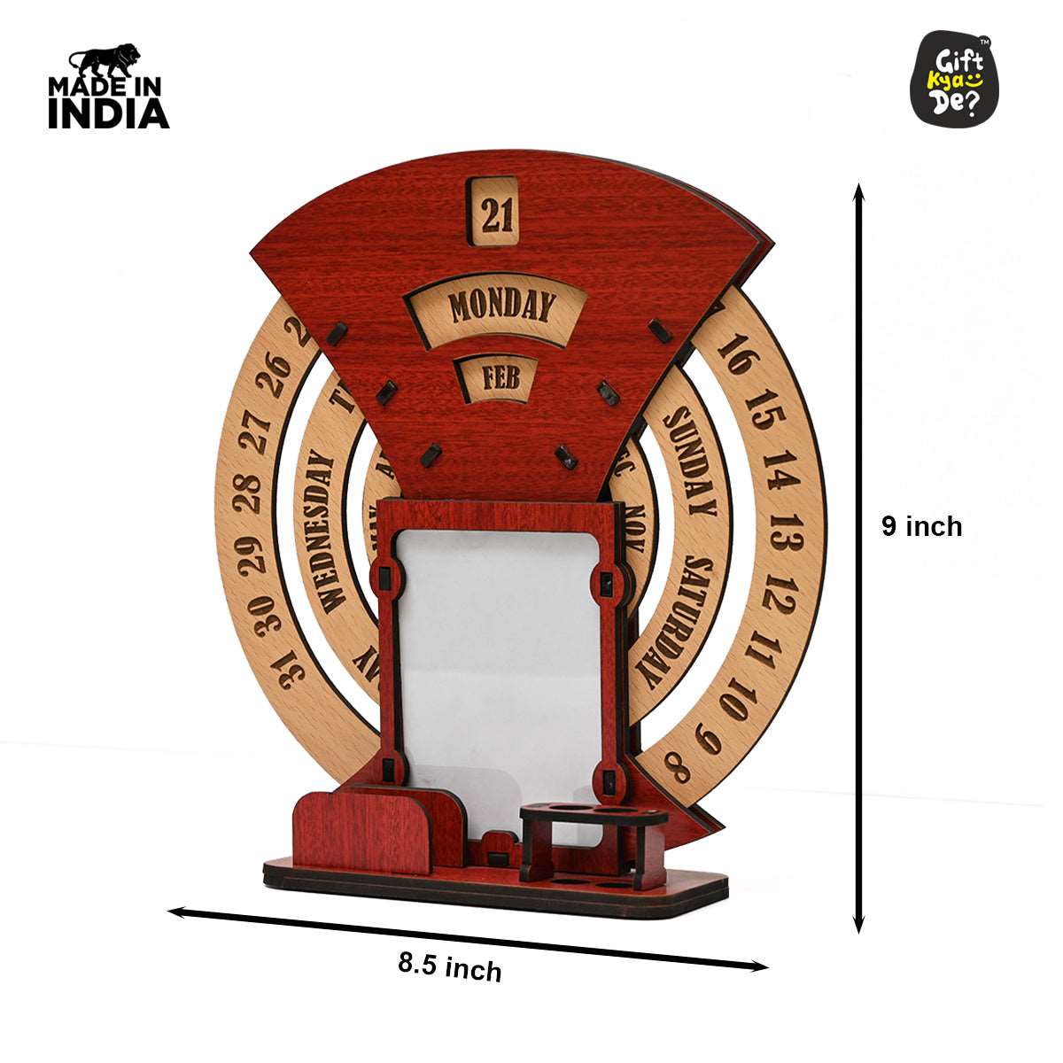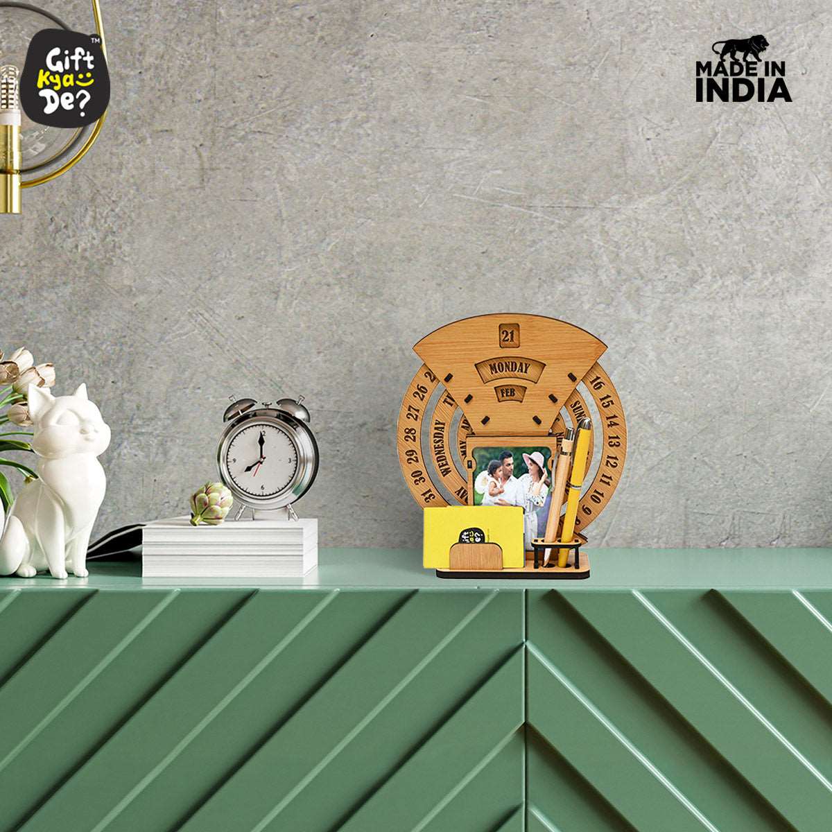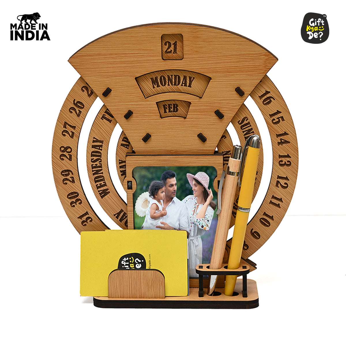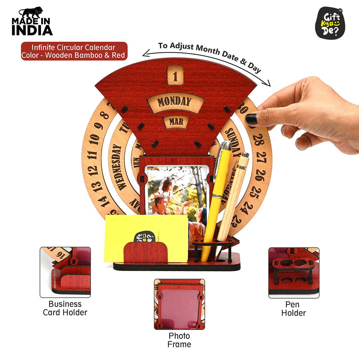 Gift Kya De Infinite Circular Calendar With Pen, Card Holder | Clock And Photo Frame Options Available | Desk Accessories