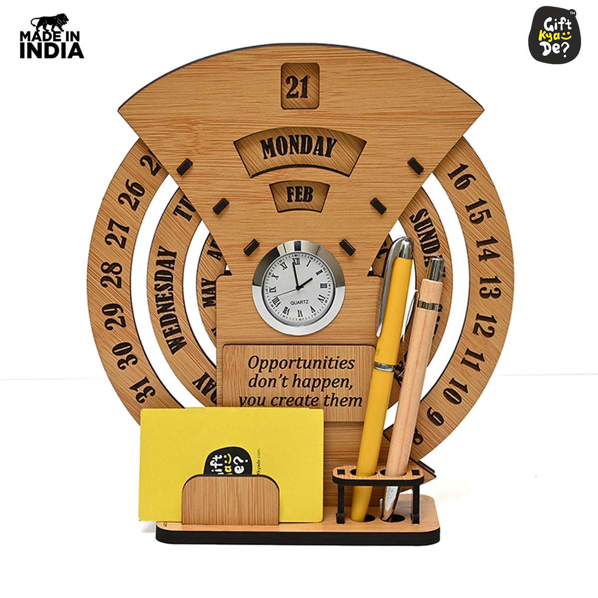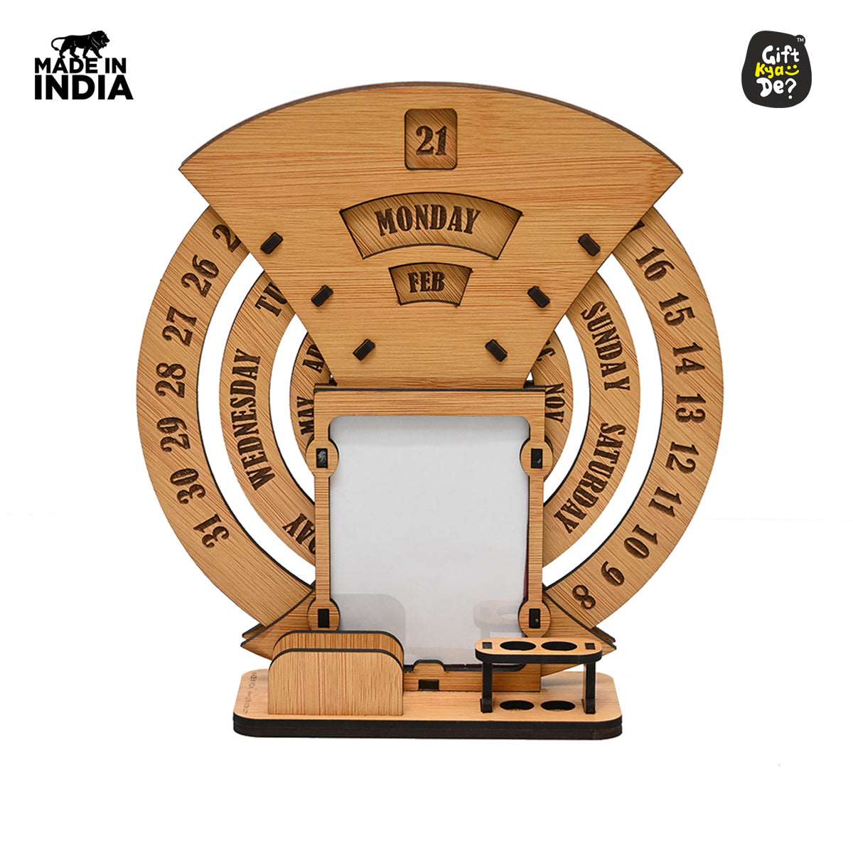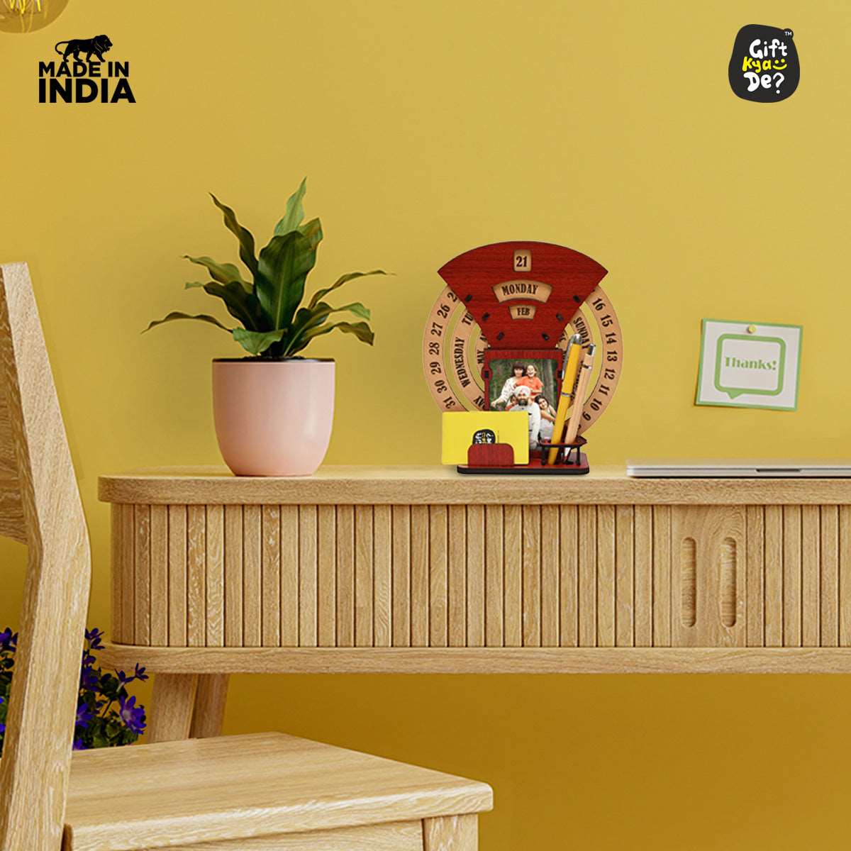 Gift Kya De Infinite Circular Calendar With Pen, Card Holder | Clock And Photo Frame Options Available | Desk Accessories