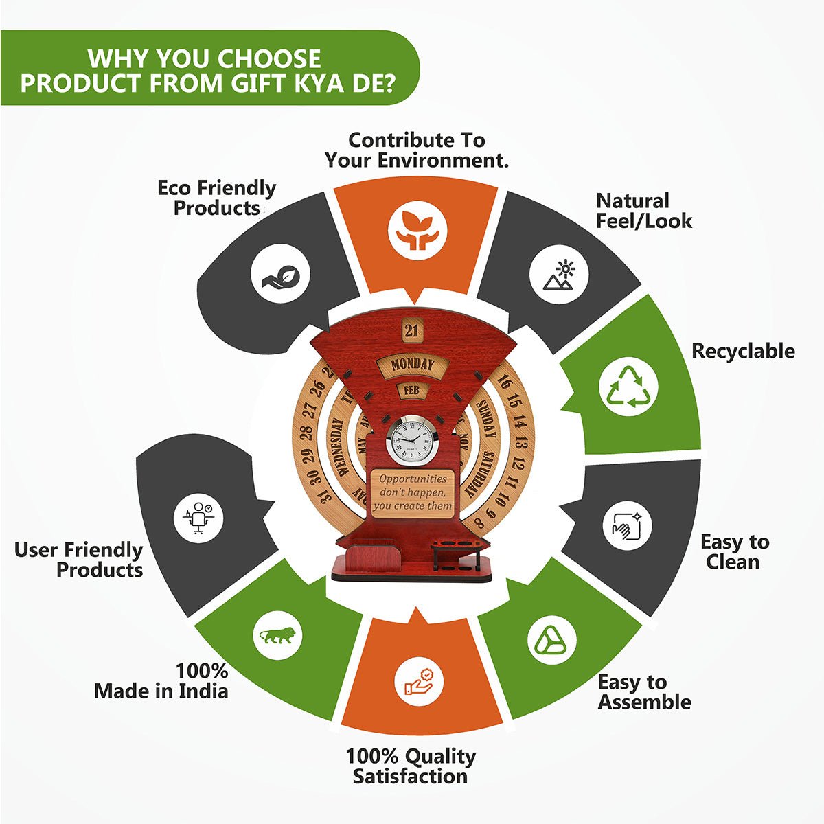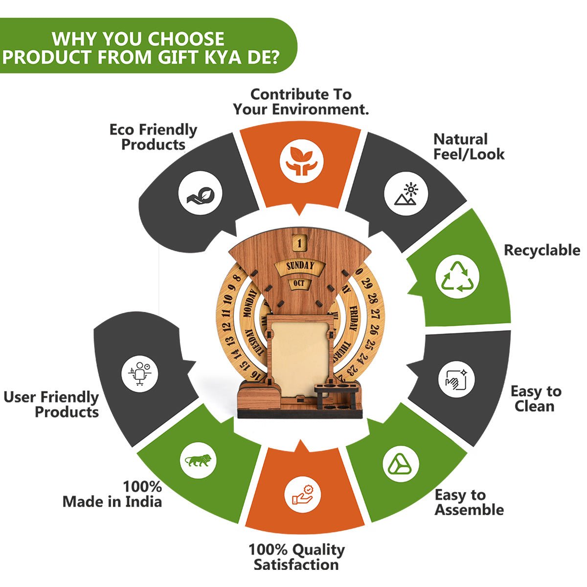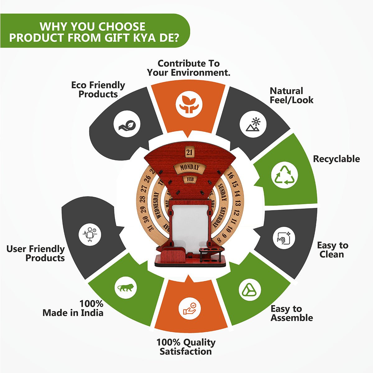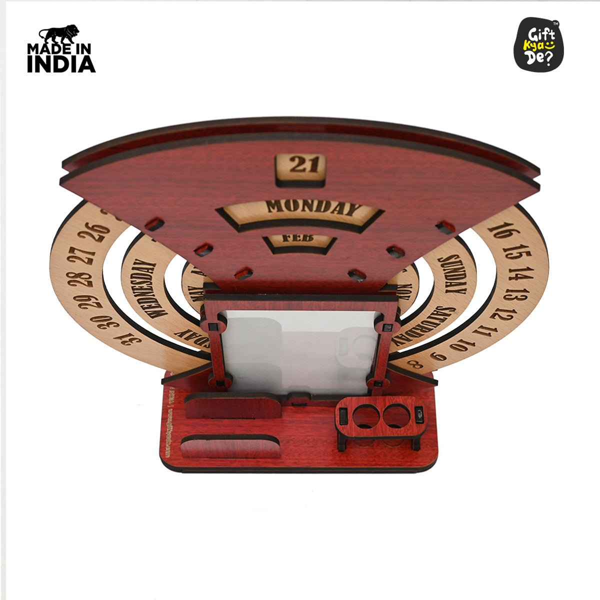 Gift Kya De Infinite Circular Calendar With Pen, Card Holder | Clock And Photo Frame Options Available | Desk Accessories