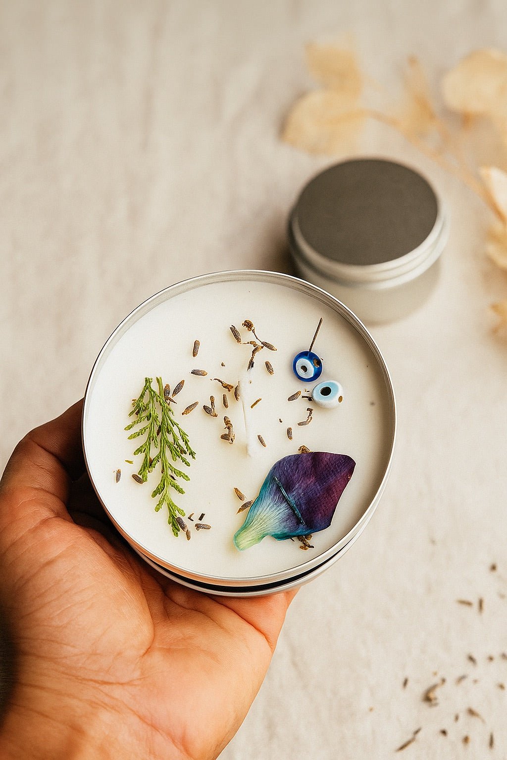 Inspired by positive intentions, this Intentional Candles Giftbox makes for a thoughtful present with our handmade, vegan candles. The box includes lidded candles as a set of 2 Protect Candles with lavender scent and a set of 2 Refresh Candles in lemongrass scent. Perfect as on-the-go candles that help you create your favoured atmosphere anywhere you go.