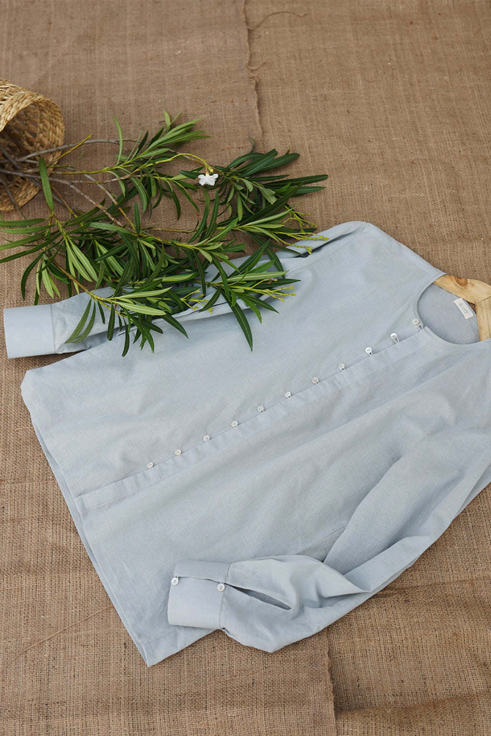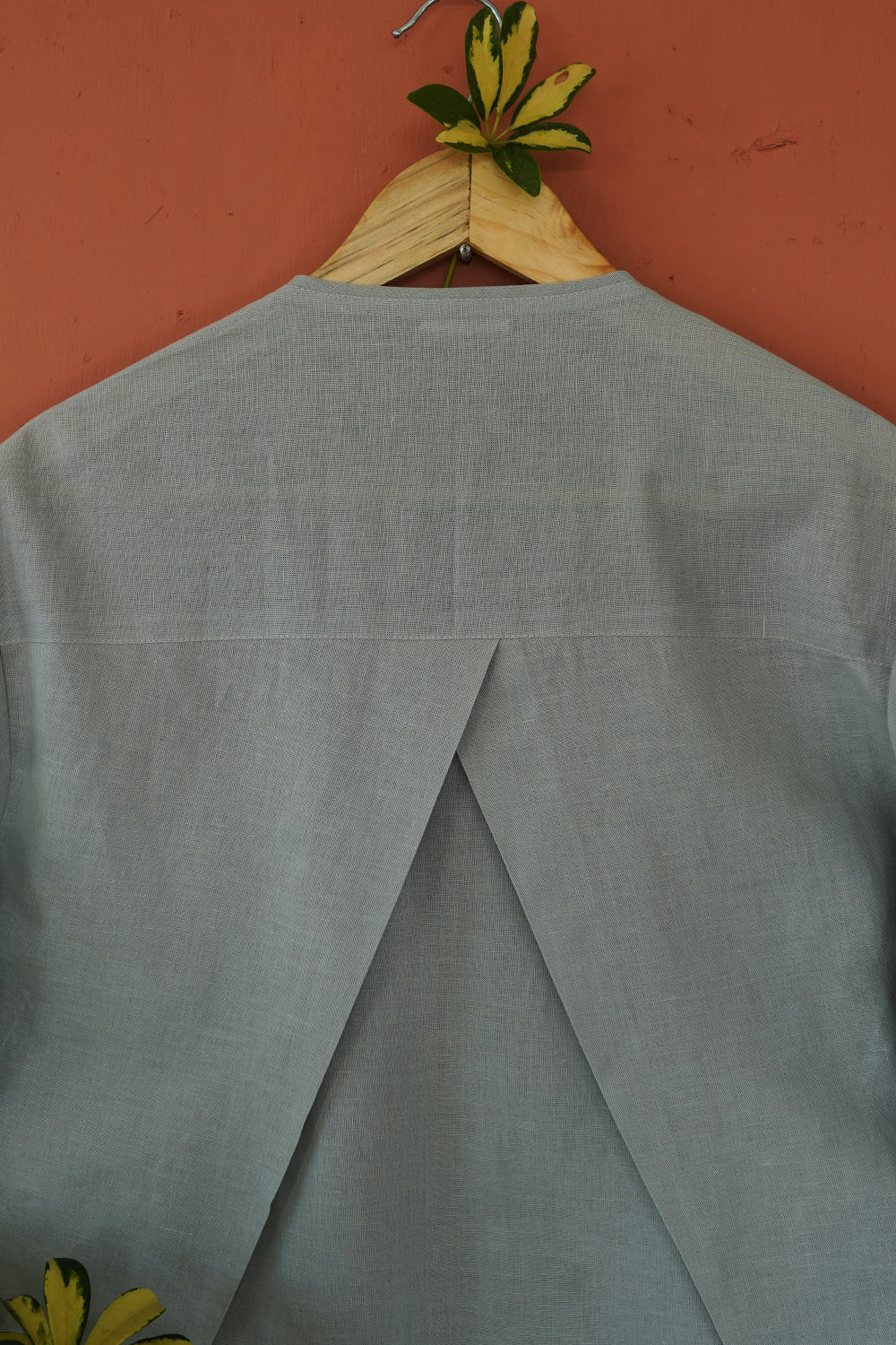 Naturally dyed pure Linen Dew grey Slim fit Round neck with a tiny collar Front opening Sea shell buttons Full sleeve length with cuffs Inverted pleat at back and sleeve Cold hand wash Length 28 inches Important Note : All our products are purely handcrafted with love and care, the colors and prints might vary. Subject to the availability of the colous, prints and fabrics. Image only for reference. No returns or exchange, as all our products are make-to-order or tailor-made to suit your custom body type, size and fit. Shipped in 7-8 working/business days.