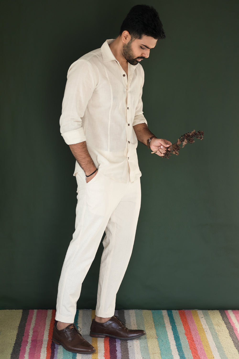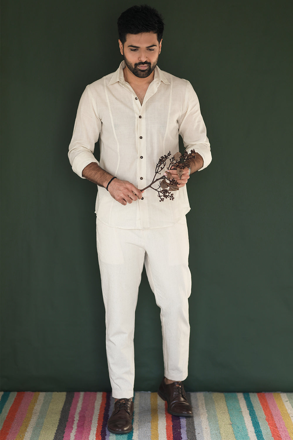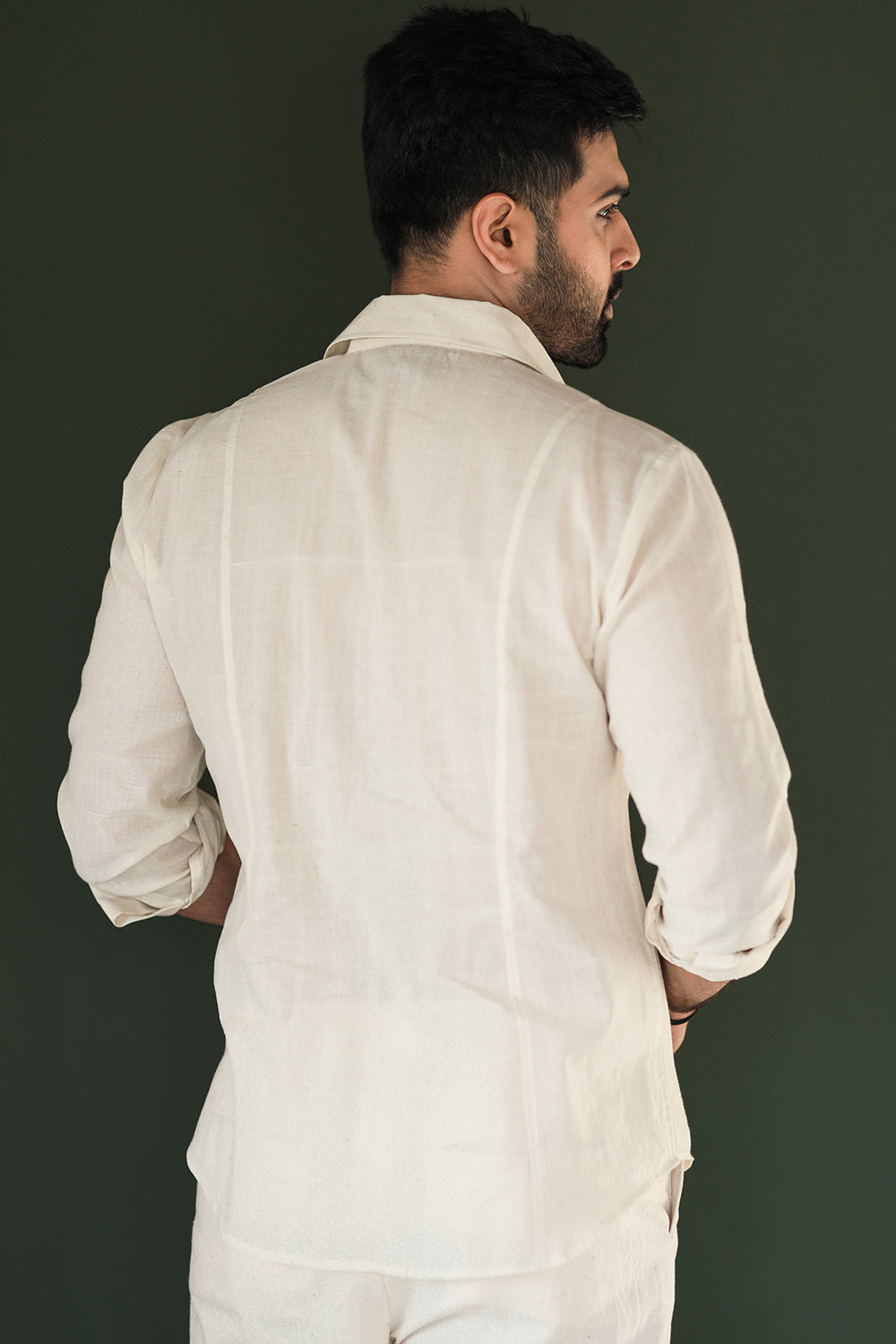 Handwoven Kora-Khadi Front button fastening Panelled shirt Slim fit Regular collar Basic sleeves Plain cuff Length 28 inches Model is 5’11” and wearing size M Important Note : All our products are purely handcrafted with love and care, the colors and prints might vary. Subject to the availability of the colous, prints and fabrics. Image only for reference. No returns or exchange, as all our products are make-to-order or tailor-made to suit your custom body type, size and fit. Shipped in 7-8 working/business days.